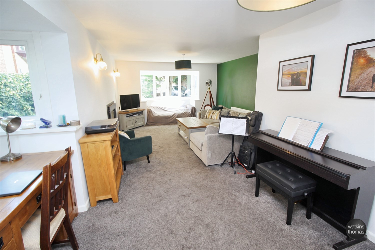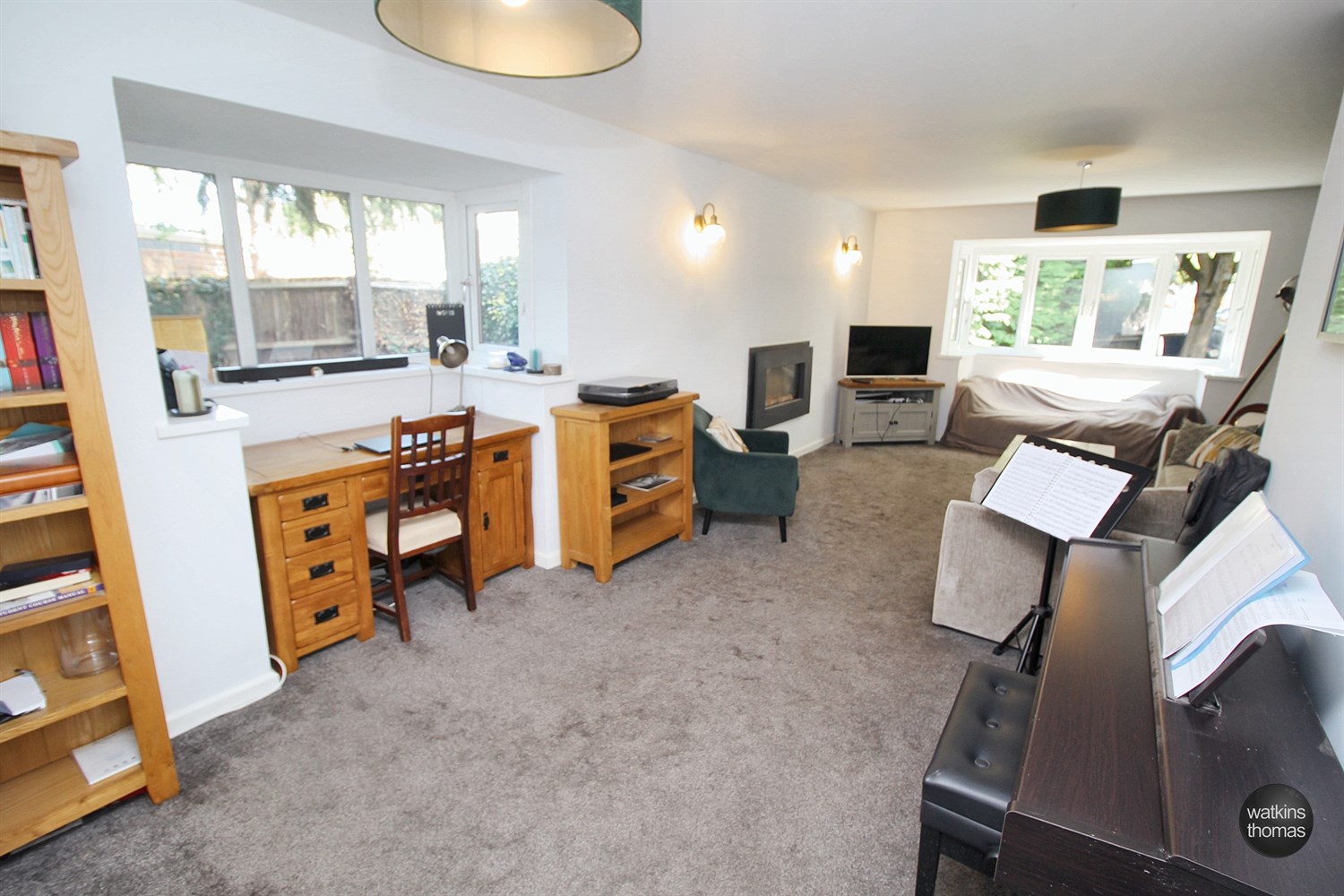 With front aspect double glazed bay window, side aspect double glazed bay window, two panelled radiators, gas fire and two wall lights.