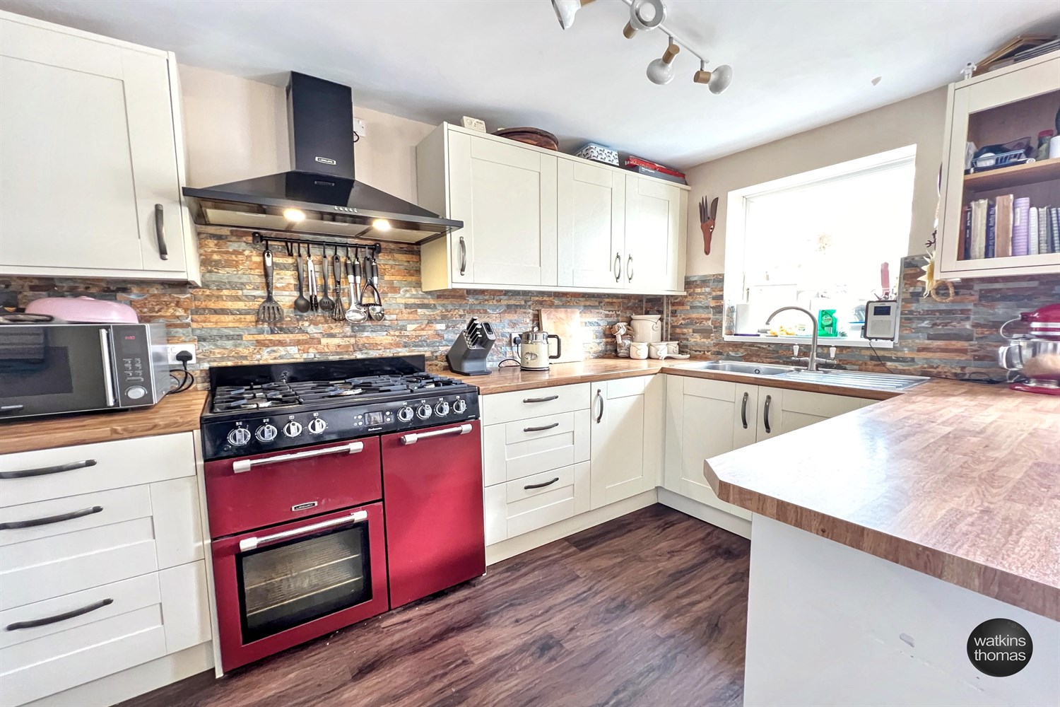 With bifold doors to the rear, double glazed window to the conservatory and with an extensive range of fitted base cupboards and drawer units with soft close doors. Wood grain effect working surfaces over, attractive tiled surrounds and with matching eye level cabinets. Single drainer stainless steel sink unit with mixer tap and drainer, recess for range style cooker, with hob over, space for an upright fridge/freezer, wood grain effect flooring, radiator, spotlight tracking and with bifold doors to the;