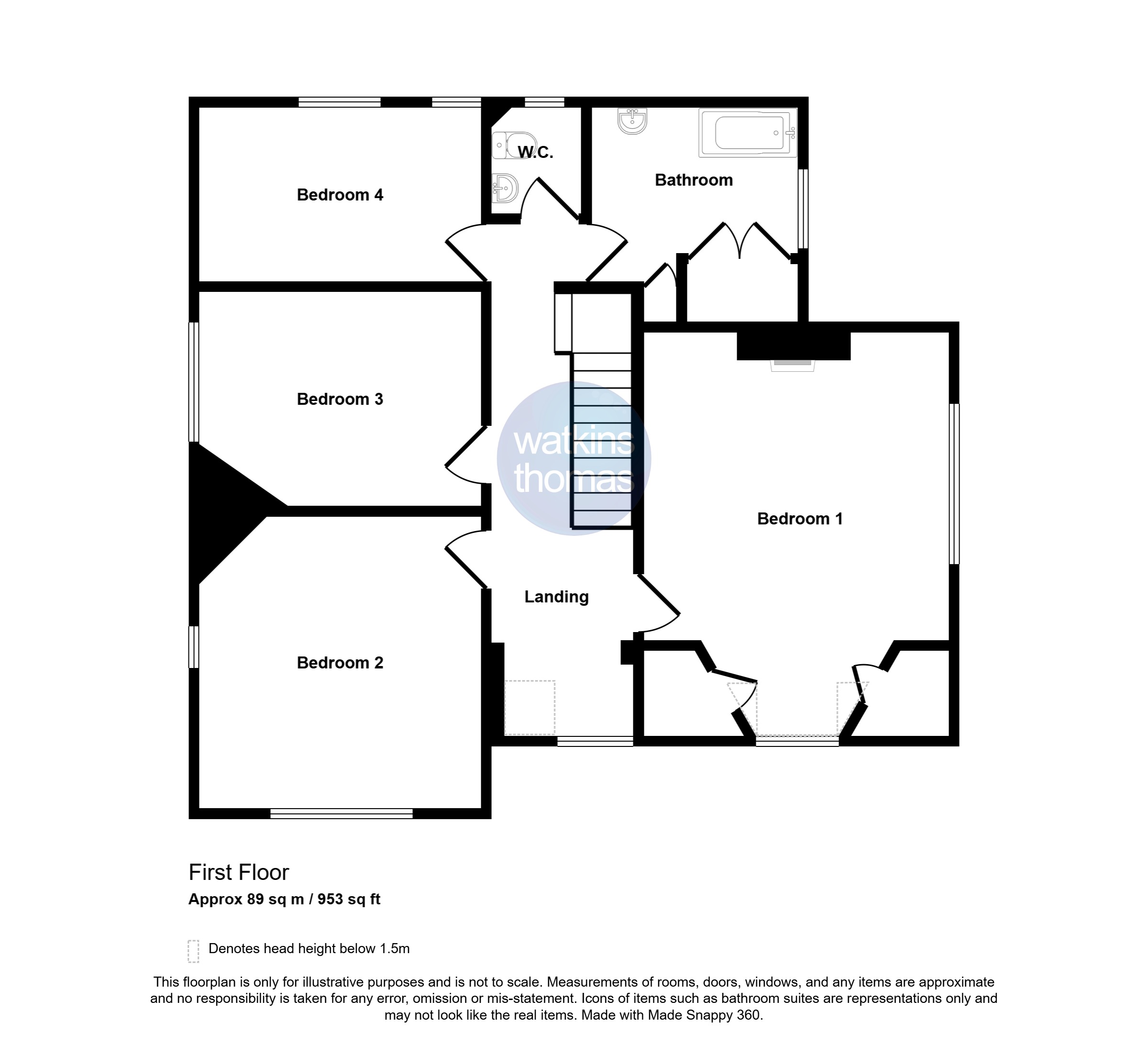Separate WC 1.37m (4'6) x 1.24m (4'1)