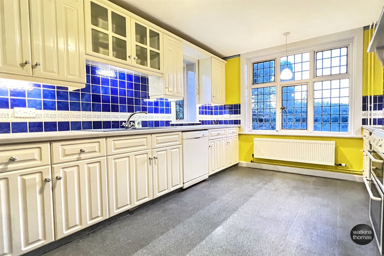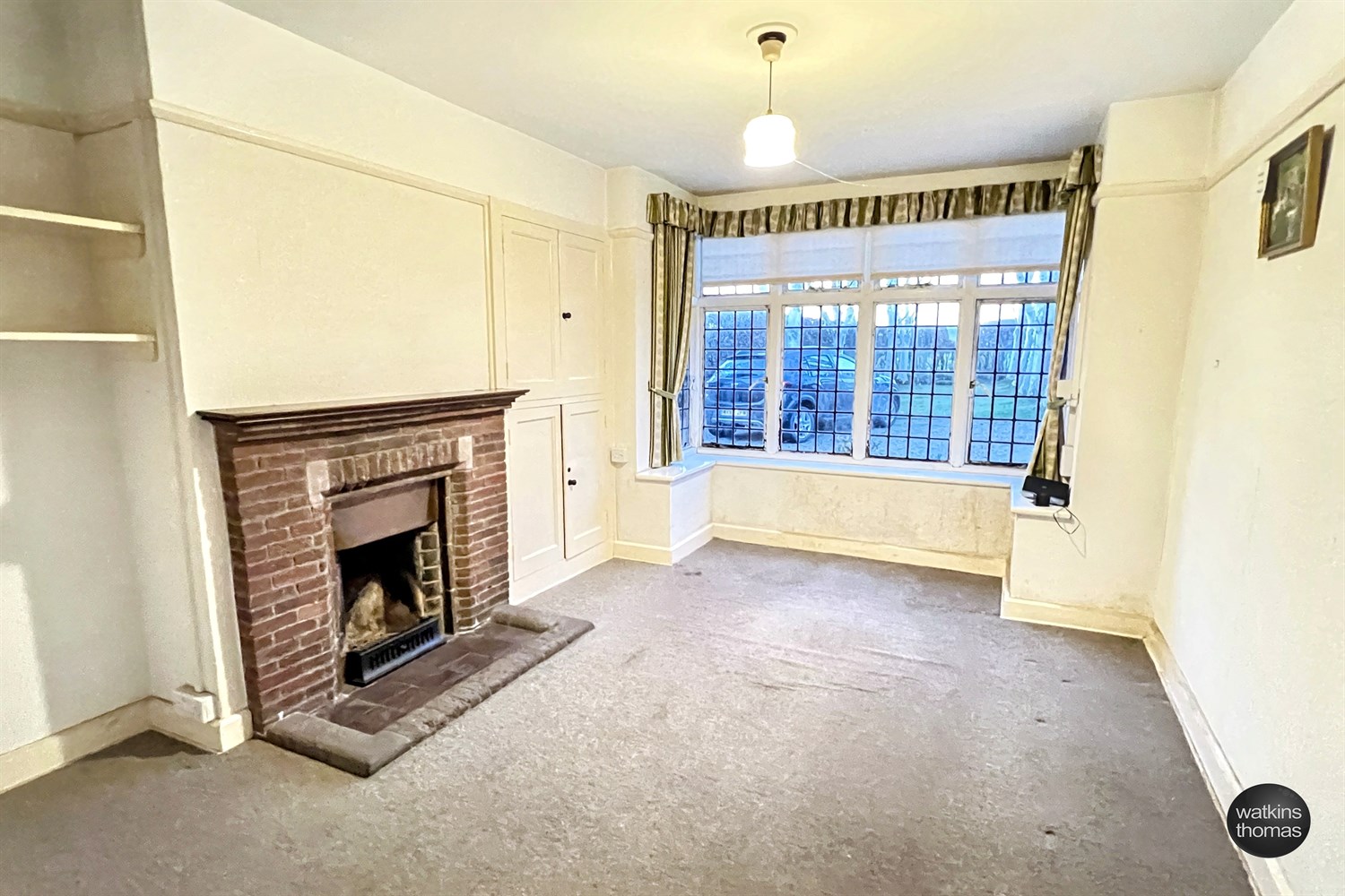 With leaded windows, brick fire surround, picture rail, radiator and built in low and high level cupboards.
