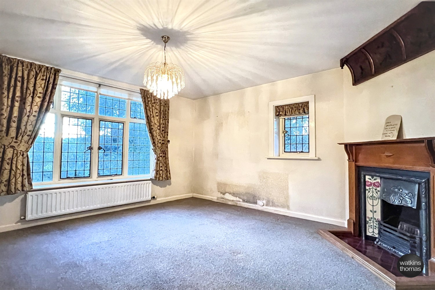With a leaded window overlooking the front gardens, leaded window to the side, radiator and oak fire surround with cast iron and tiled inset and cast and tiled hearth.
