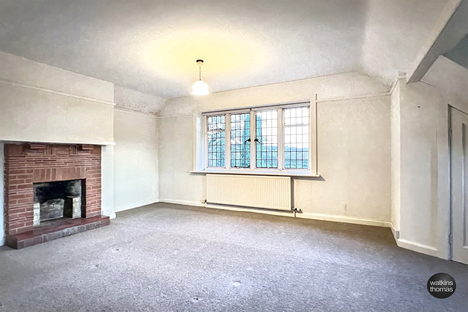 With a leaded window overlooking the parade of silver birch trees, picture rail and radiator.