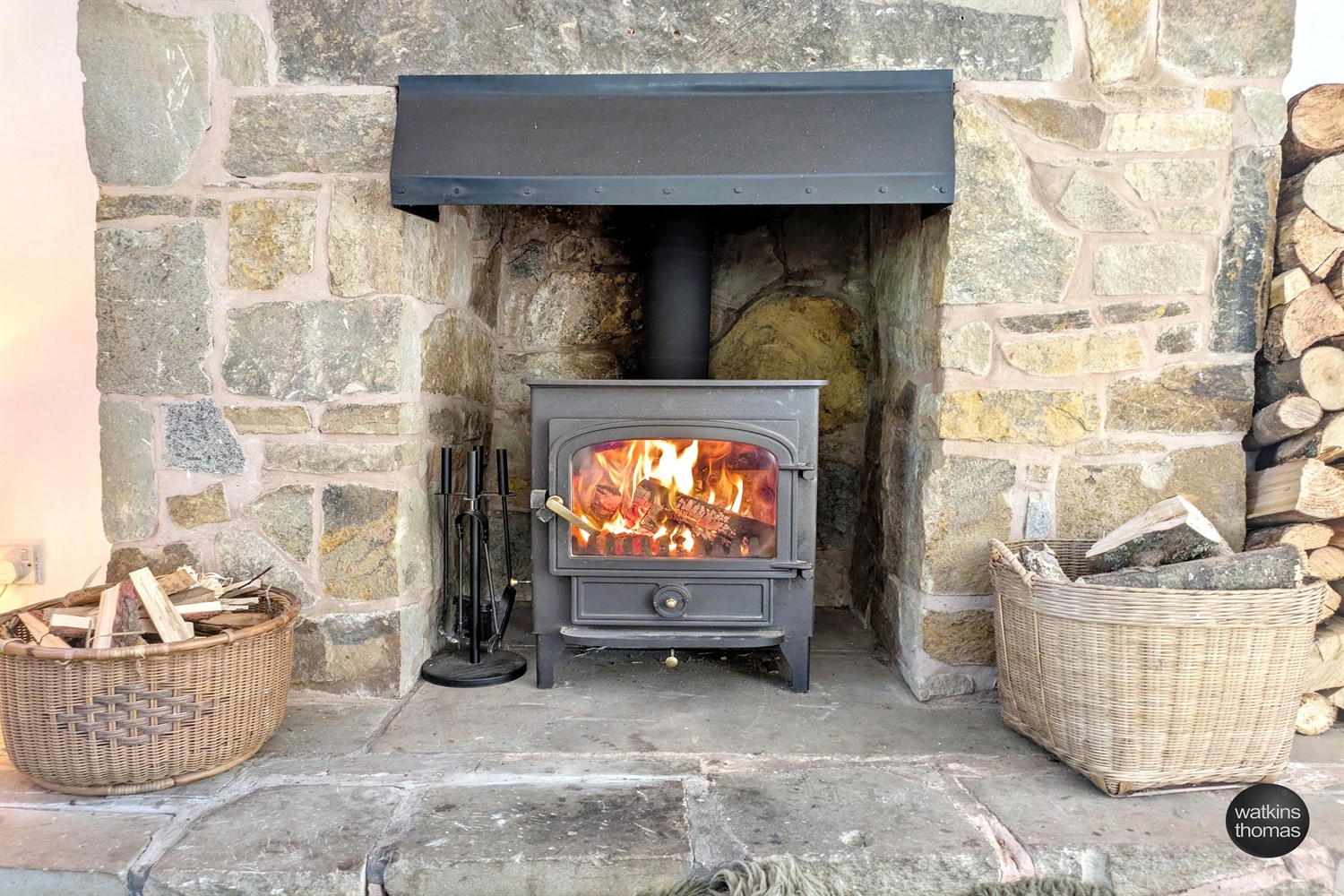 With two side aspect double glazed windows, wood burning stove with stone surround, stairs to the first floor, inset spot lights and access to the kitchen.
