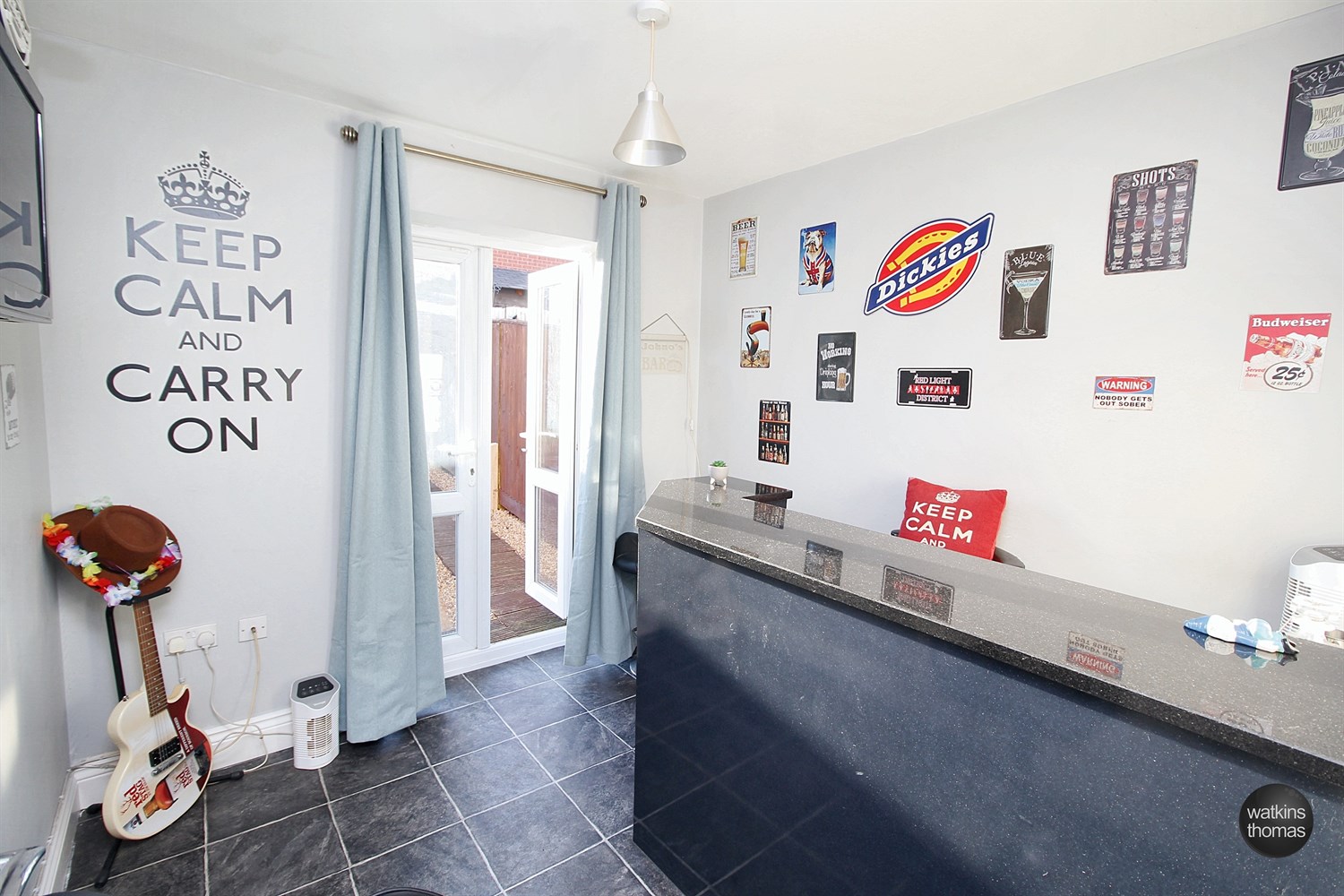 With rear aspect double glazed French doors, built-in bar and panelled radiator.