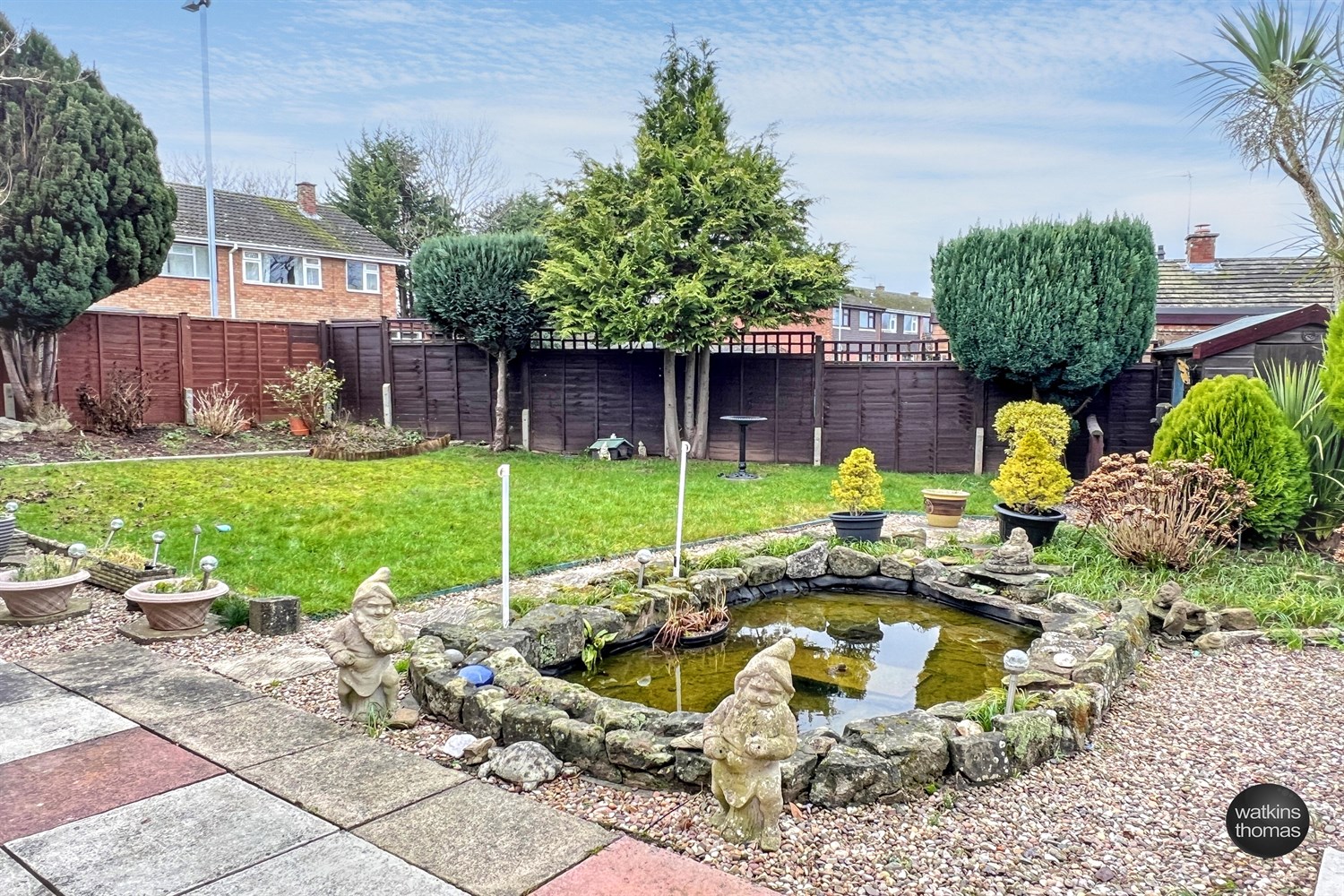 Within the front garden area there are two arcs laid to slate with rocks, there are evergreens and the remainder of the area is given over to lawn. The property has a side pedestrian access and from the kitchen there is a covered lean to/drying area (15'6 by 7'9) with corrugated perpex roof over. The base is paving stones which continues to and through a gateway which opens to the rear garden which has a further area of paving stones. The paving stone area leads to a patio, an ornamental pool with rocks around, an expanse of lawn and deep, well stocked beds and borders. Within the garden there is also a summerhouse (7'6 by 5'9) and a garden shed.