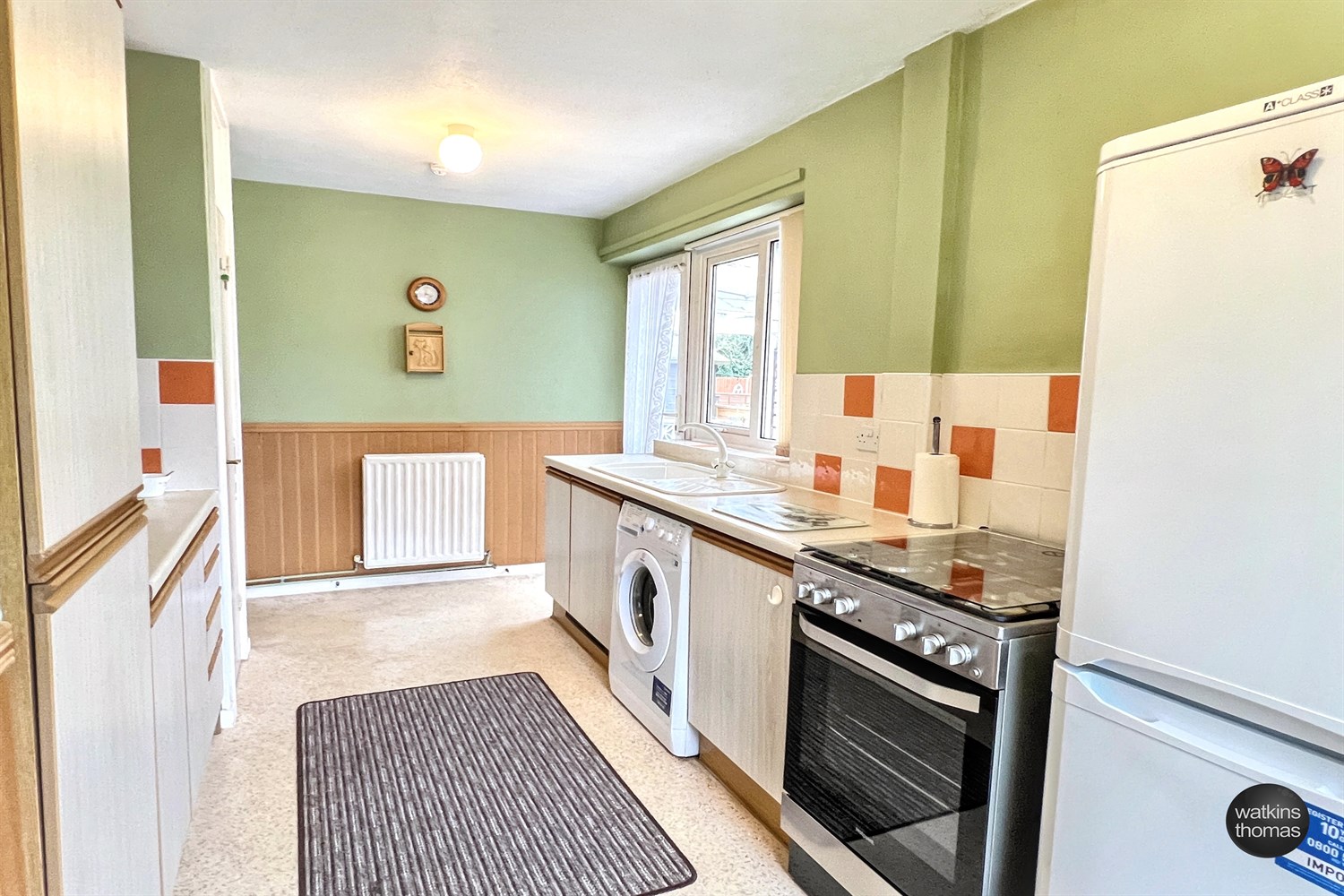 With a double glazed window to the front, double glazed window and door to the side and fitted base cupboards and drawer units with working surface over, tiled surrounds and a double eye level cabinet together with a set of floor to ceiling storage cupboards. Counter lighting and with a single drainer sink unit with mixer tap, recess with plumbing for dishwasher, radiator and door to cupboard which houses the wall mounted gas fired boiler which provides central heating and domestic hot water.