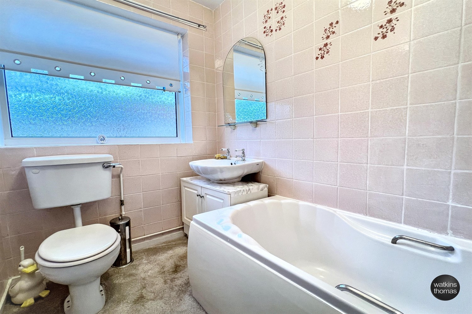 With white suite comprising bath with electric shower over, low level WC and pedestal wash basin. Double glazed window, fully tiled walls and radiator.