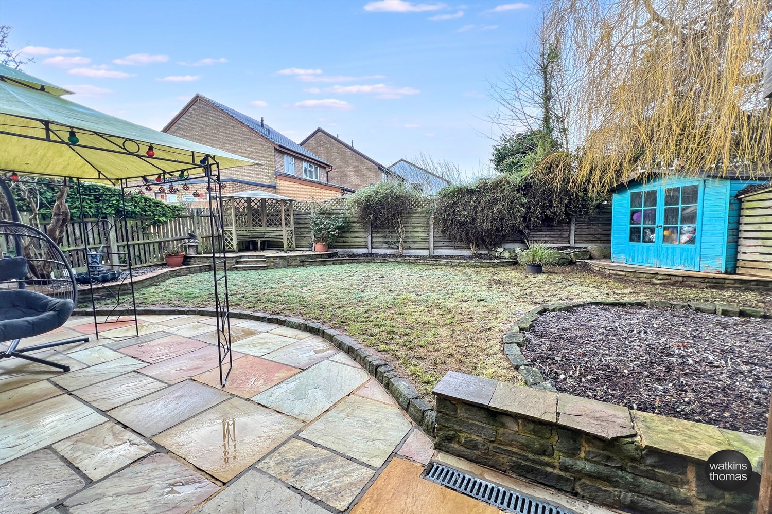 To the front there is a lawned garden area with ornamental tree. The rear garden can be accessed via a pathway to the side of the property and features an arched sun terrace, lawned area, raised seating space, pergola and a summer house with electricity. The rear garden enjoys a south-westerly aspect.