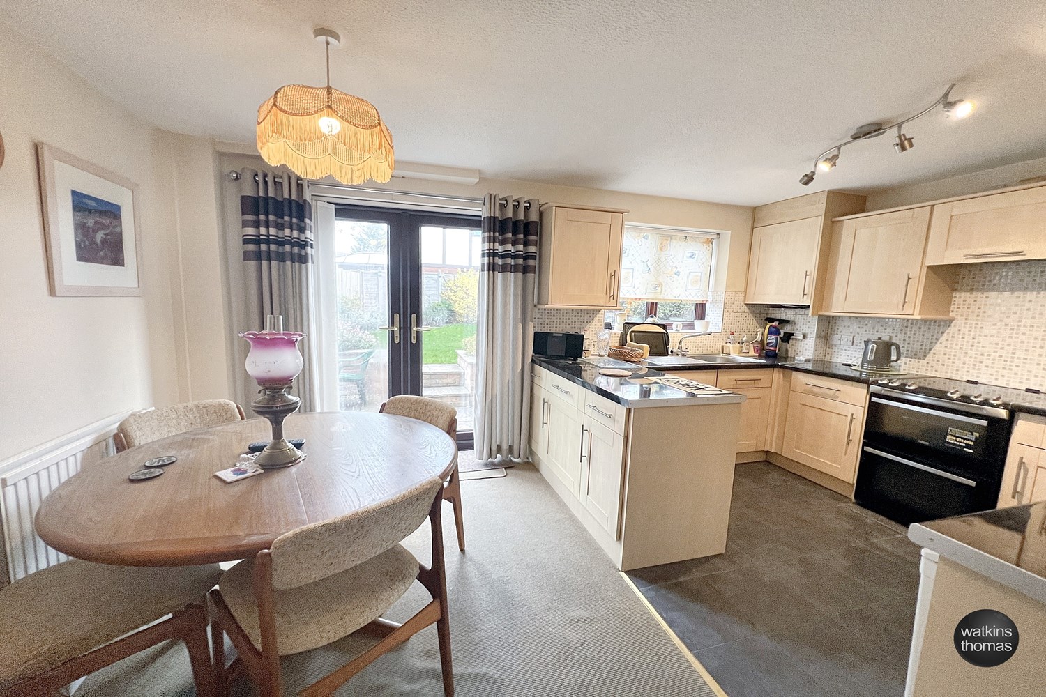 Dining area with panelled radiator, under stair storage cupboard, double glazed french doors giving access to the garden.
