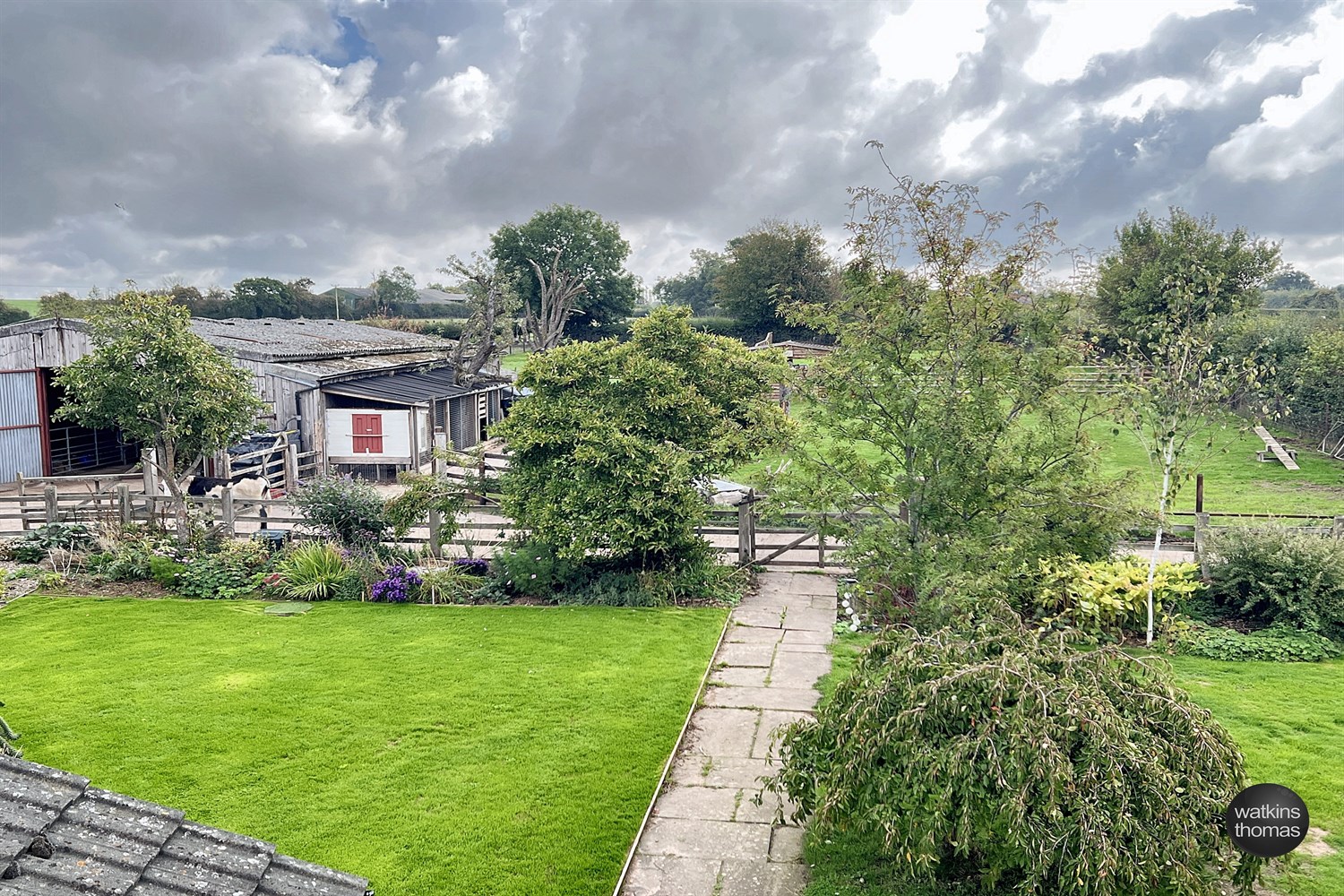 Beyond the garden there are three PADDOCKS divided by post and rail fencing together with a central ANIMAL SHELTER (15' by 10'8).