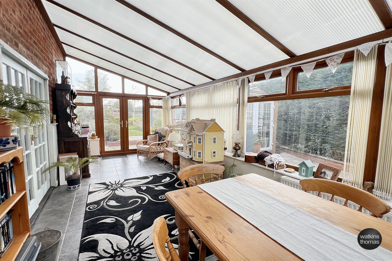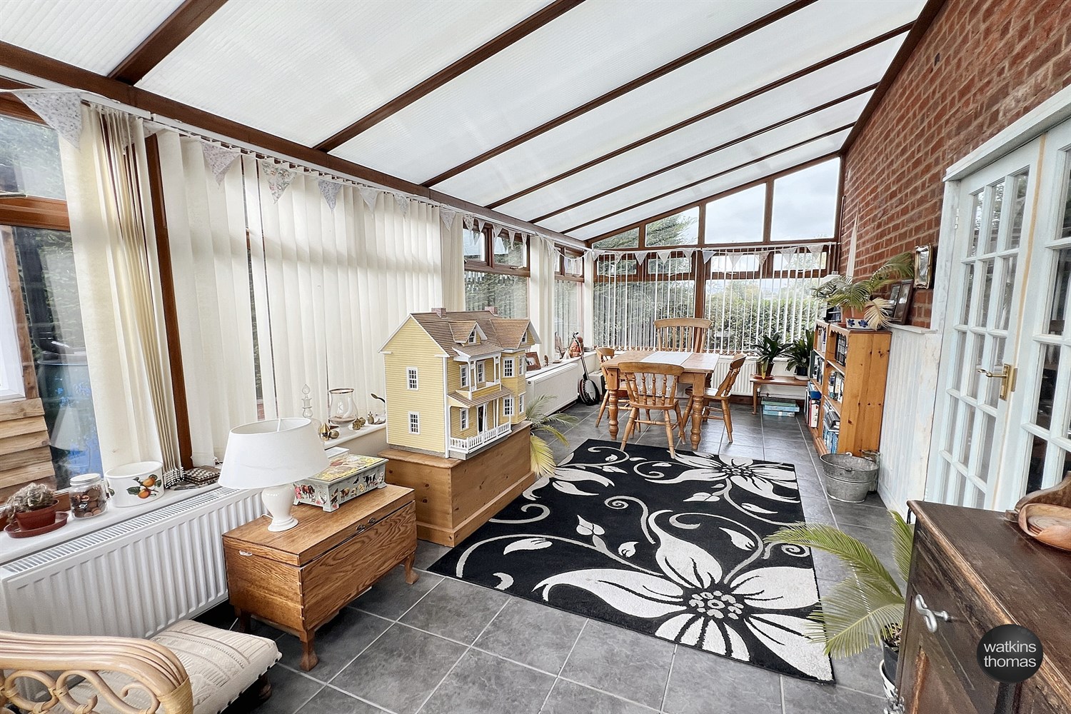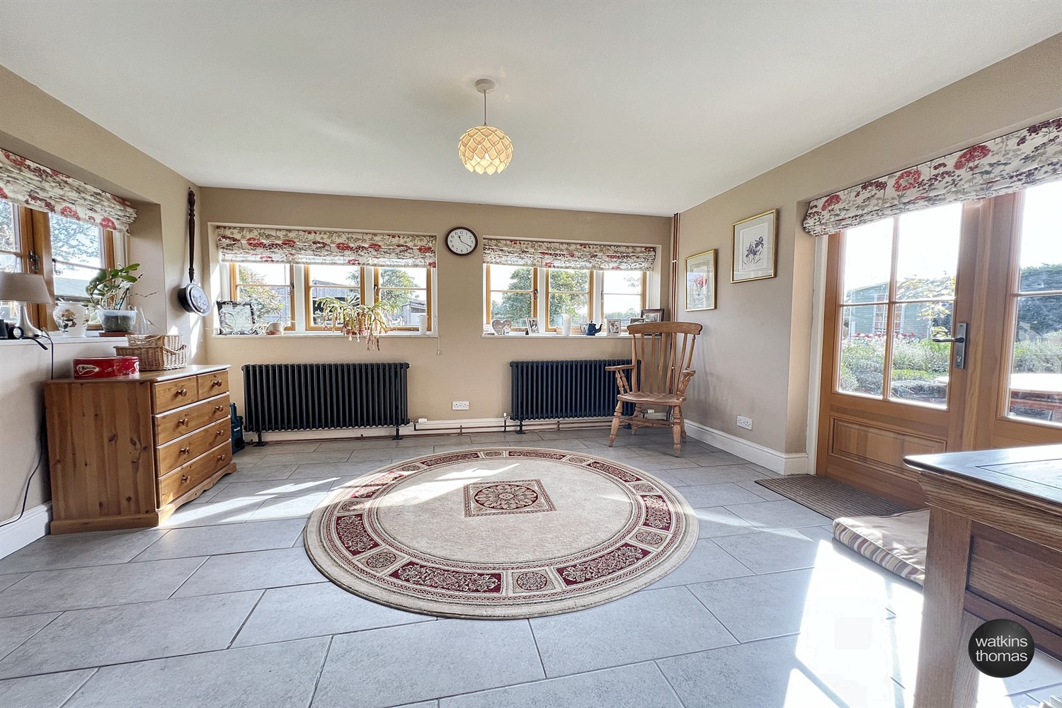 With double glazed windows to two elevations and with a double glazed stable door and pair of double glazed doors opening to the patio. Access hatch to loft, two contemporary style radiators and tiled floor.