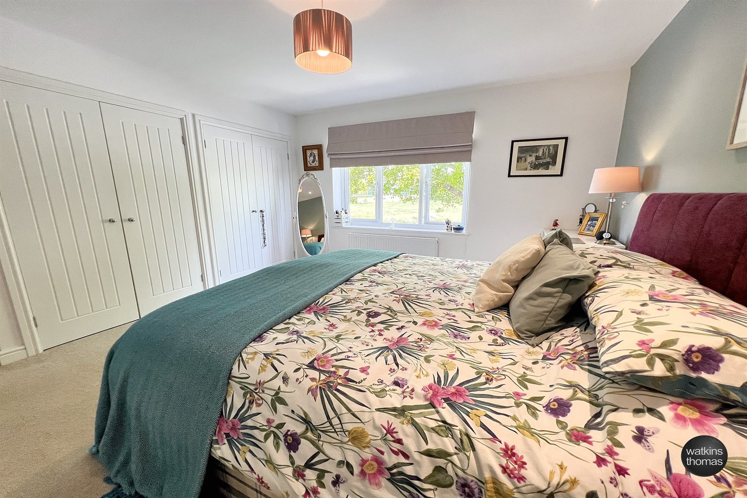 With a double glazed window enjoying and expansive view over tree lined Herefordshire countryside. Radiator and door to recessed wardrobe cupboard with hanging rail and storage shelving.