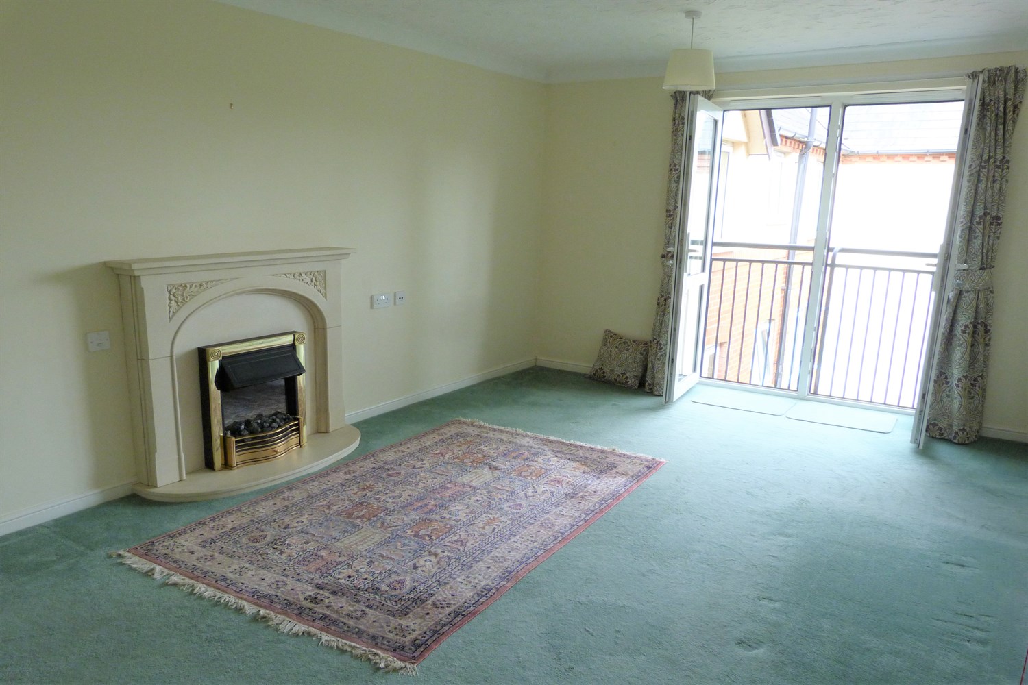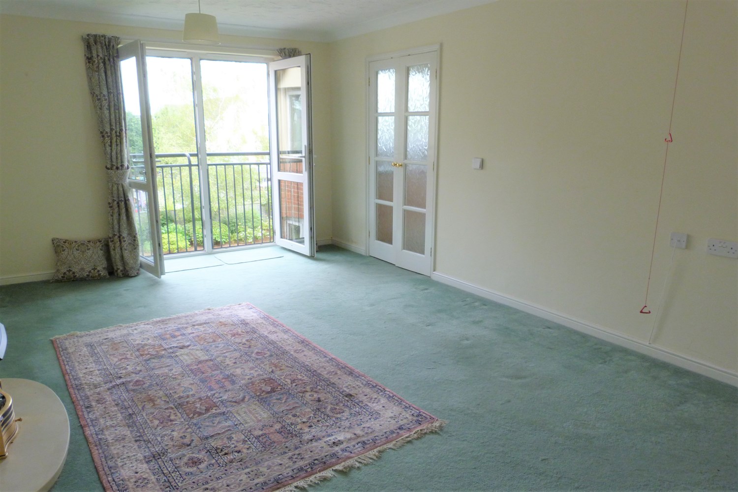 With double glazed double French doors to a Juliette balcony overlooking the beautifully landscaped communal garden, coved ceiling, fitted carpet, electric panel heater, stone effect fire surround with inset coal effect electric fire, double television aerial socket, telephone point, emergency pull cord and double doors to: