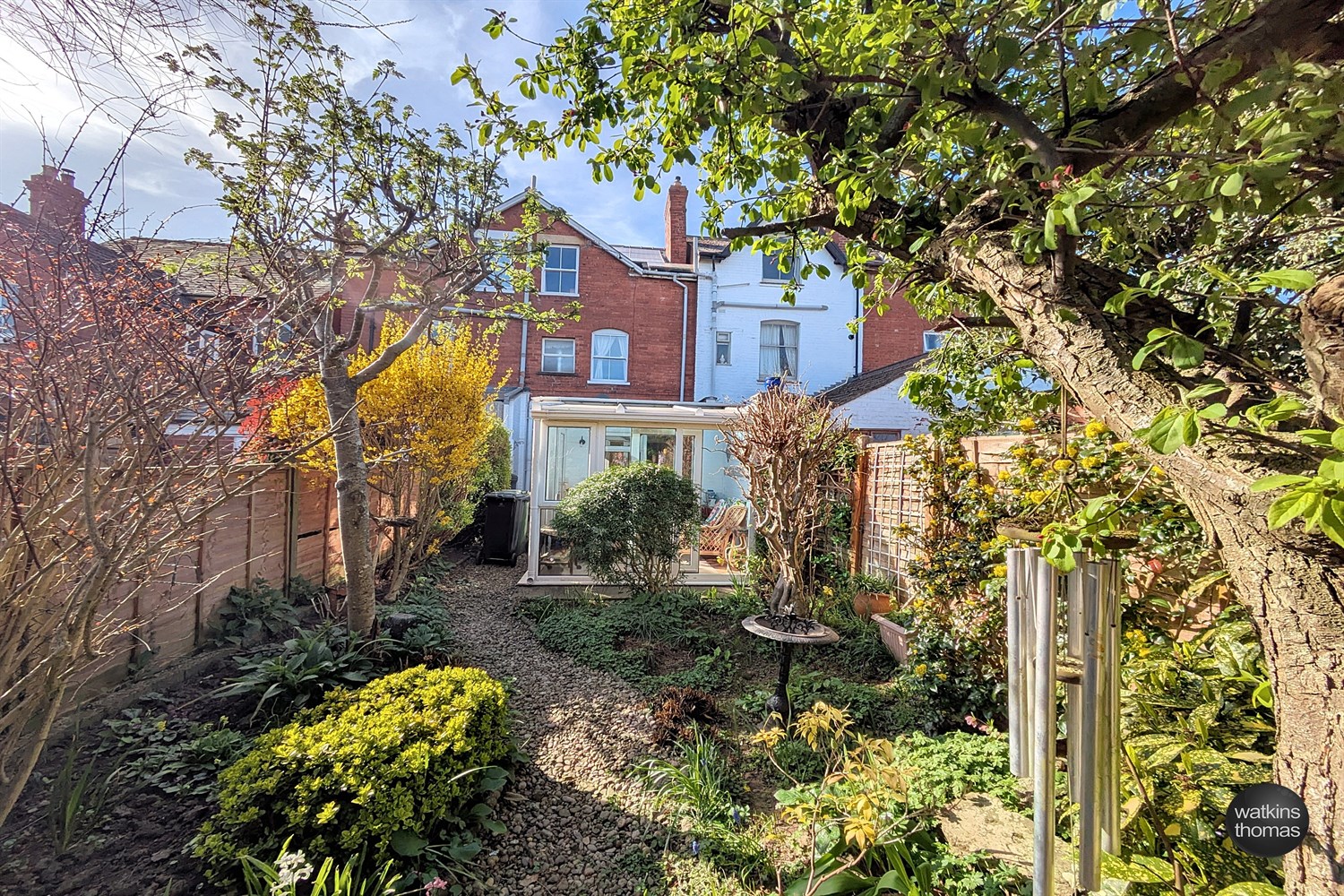 To the front of the property is a courtyard garden with path leading to the front door.