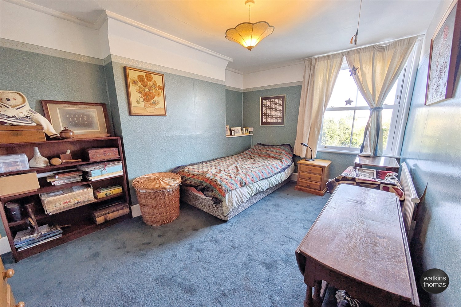 With rear aspect double glazed sash window, panelled radiator and wardrobe with hanging rail and shelf.