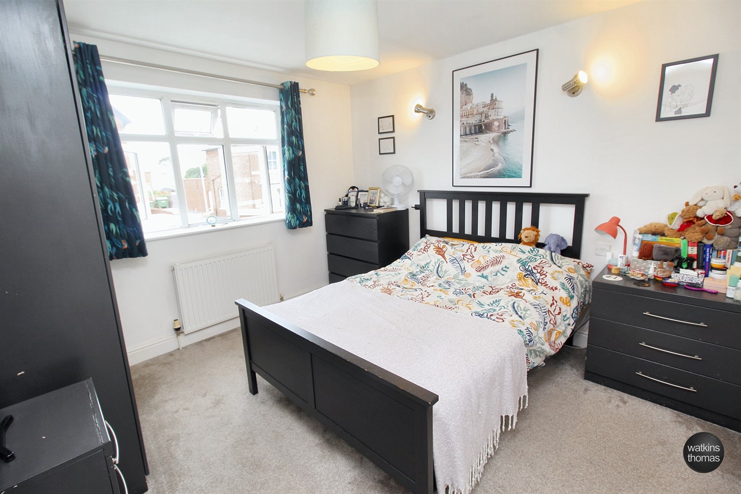 With front aspect double glazed window, panelled radiator, two wall lights and door to en-suite shower room.