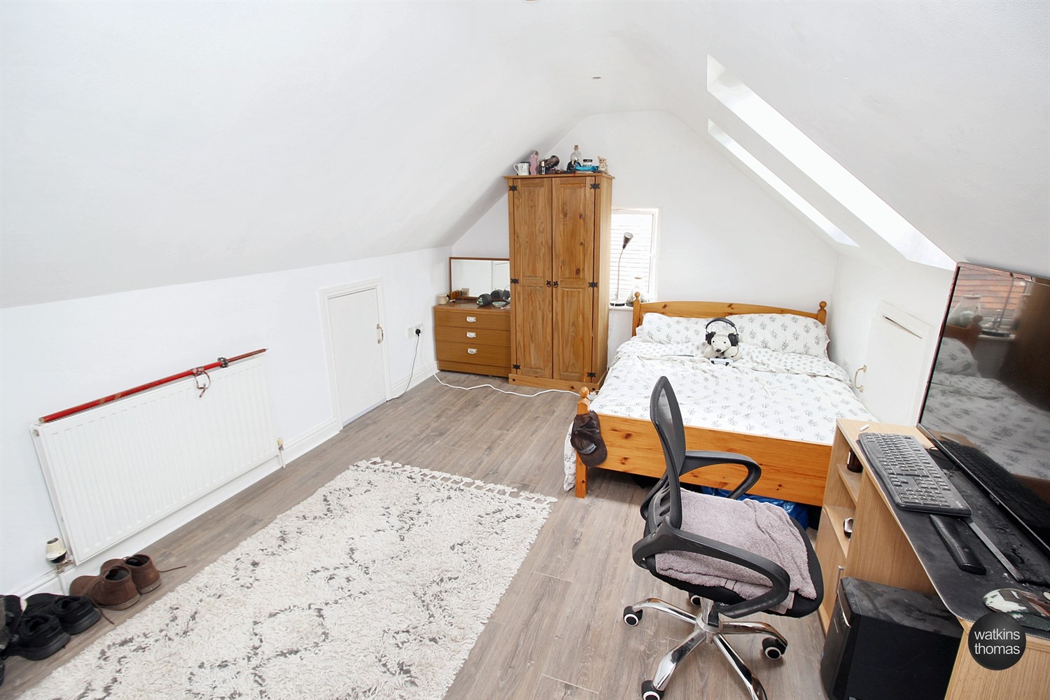 With side aspect double glazed window, two rear aspect double glazed velux windows, eaves storage cupboards, laminated flooring and panelled radiator (please note that there is reduced head height to sections of the room)