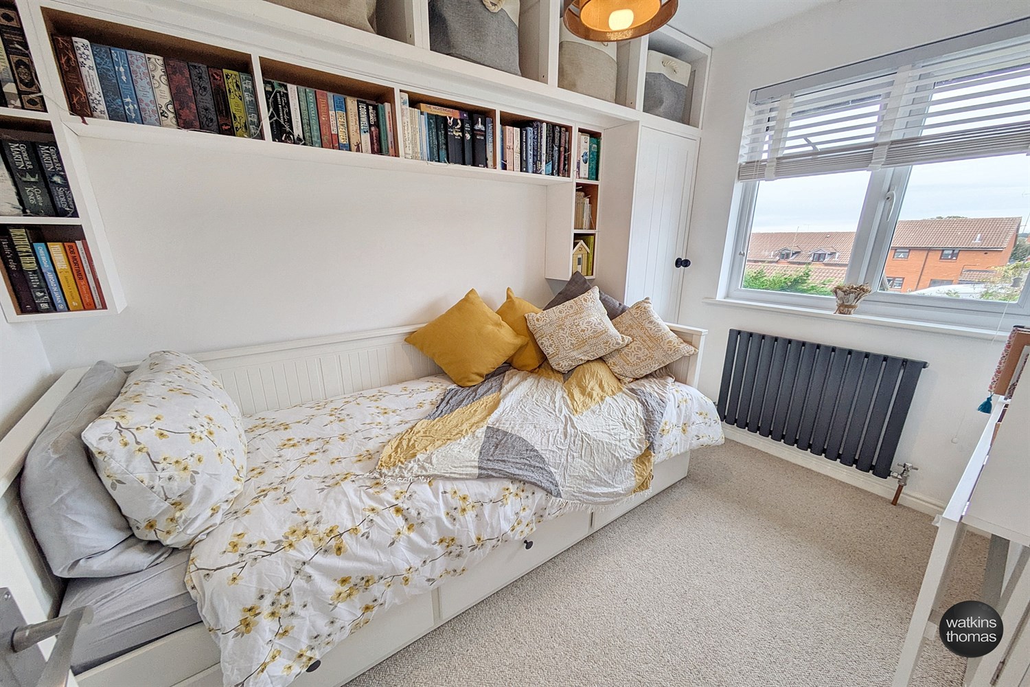 With front aspect double glazed window, built in wardrobe and shelving, a folding desk and featured radiator.