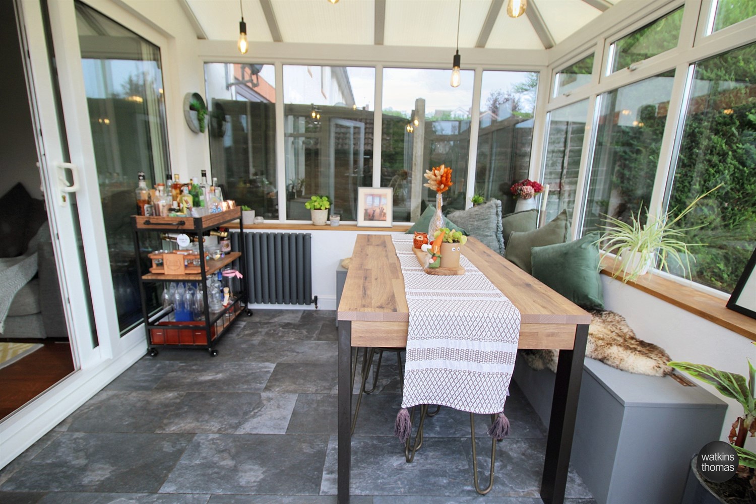 Of UPVC construction with rear and side aspect double glazed windows and side aspect double glazed french doors giving access to the garden.