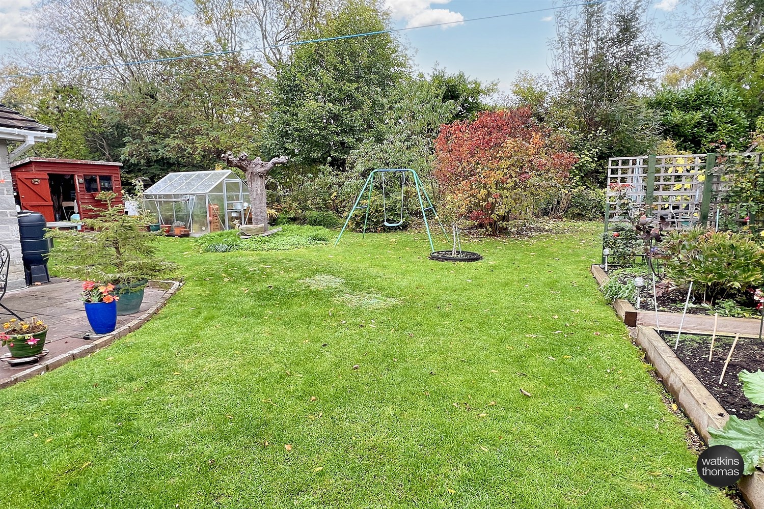 To the right of the driveway there is a planted garden behind a sleeper border and the remainder of the front garden is lawned and features a silver birch and hydrangea. The rear garden, which can be approached from a gate at the side of the property, includes a raised planted border, ornamental pond and a concrete pathway runs to the rear of the property, to a large shaped paving stone patio/sun terrace. The remainder of the gardens are lawned, have feature raised planted beds, numerous individual shrubs and there is also a potting shed (8'1 x 6'), a greenhouse (8' by 6') and a bay of block stores which is about 5' 5 deep and 24' long. The rear gardens are mature and are bordered by a tree lined brook. The property also has the benefit of a timber workshop located at the rear of the garage (14' by 8'9).