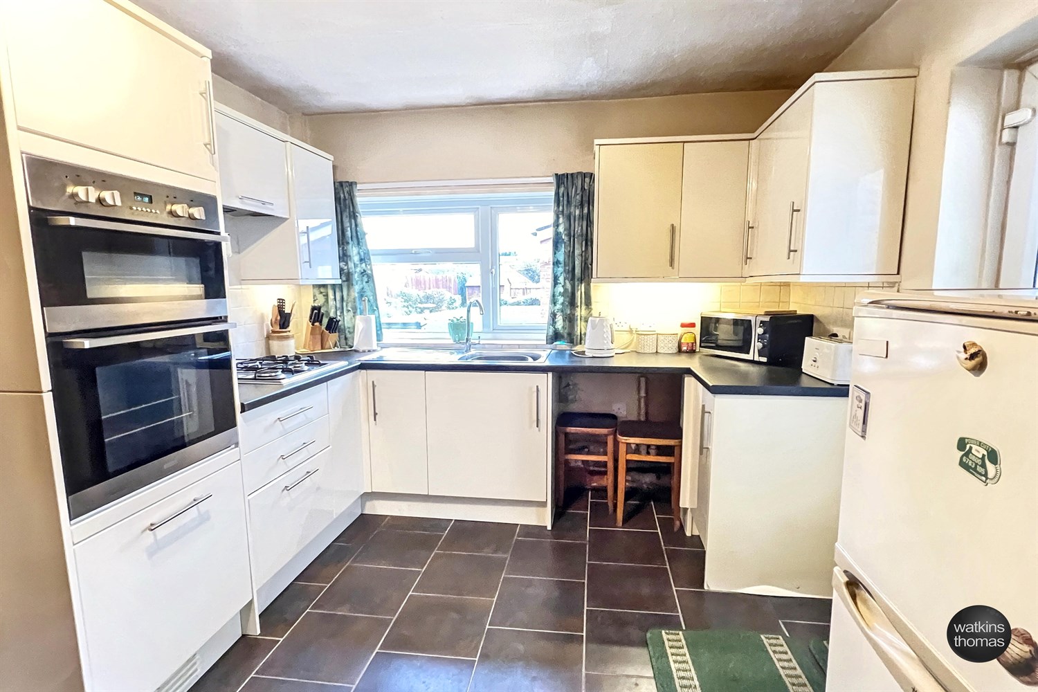 With a double glazed door to the side, double glazed window overlooking the rear garden and with fitted base cupboards and drawer units with working surface over, tiled surrounds, tiled flooring and eye level cabinets. Recess for washing machine, radiator, double electric oven, four ring hob with cooker hood over and having a single drainer stainless steel sink unit with mixer tap. Further base cupboard and drawer units and with a pair of recessed cupboards in which is housed the wall mounted gas fired boiler which provides central heating and domestic hot water.