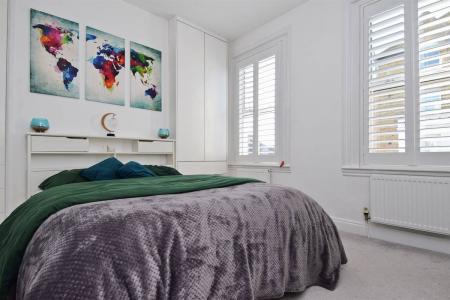 Windows to side with sea views. Built-in double wardrobe. Two radiators. power points. Cupboard housing gas fired combination boiler.