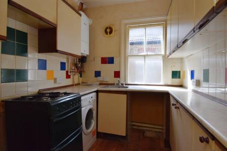 The kitchen is planned with a matching range of wall and base units arranged on two walls. Stainless steel sink unit. Gas cooker point. Plumbing for washing machine. Wall mounted combination Worcester gas boiler supplying hot water and central heating.
