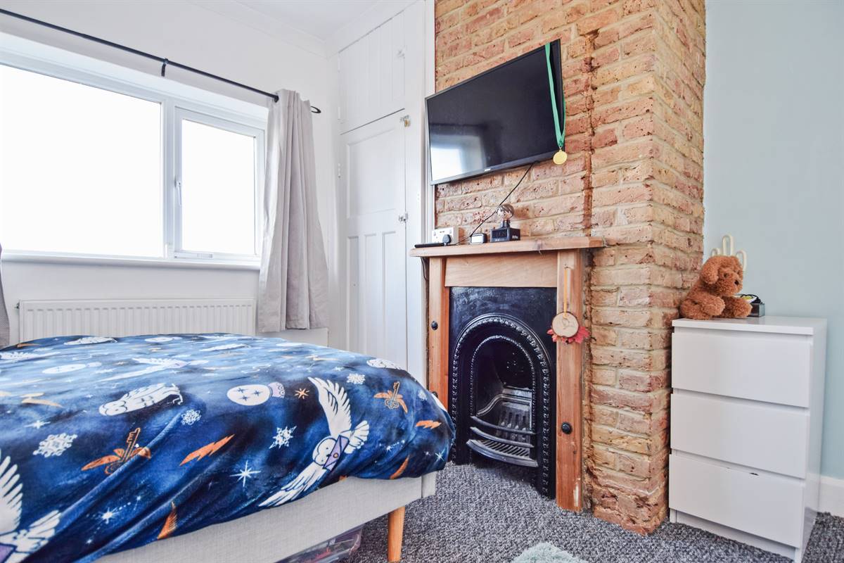 Window to rear overlooking rear garden. Radiator. Power points. Feature brick fireplace.