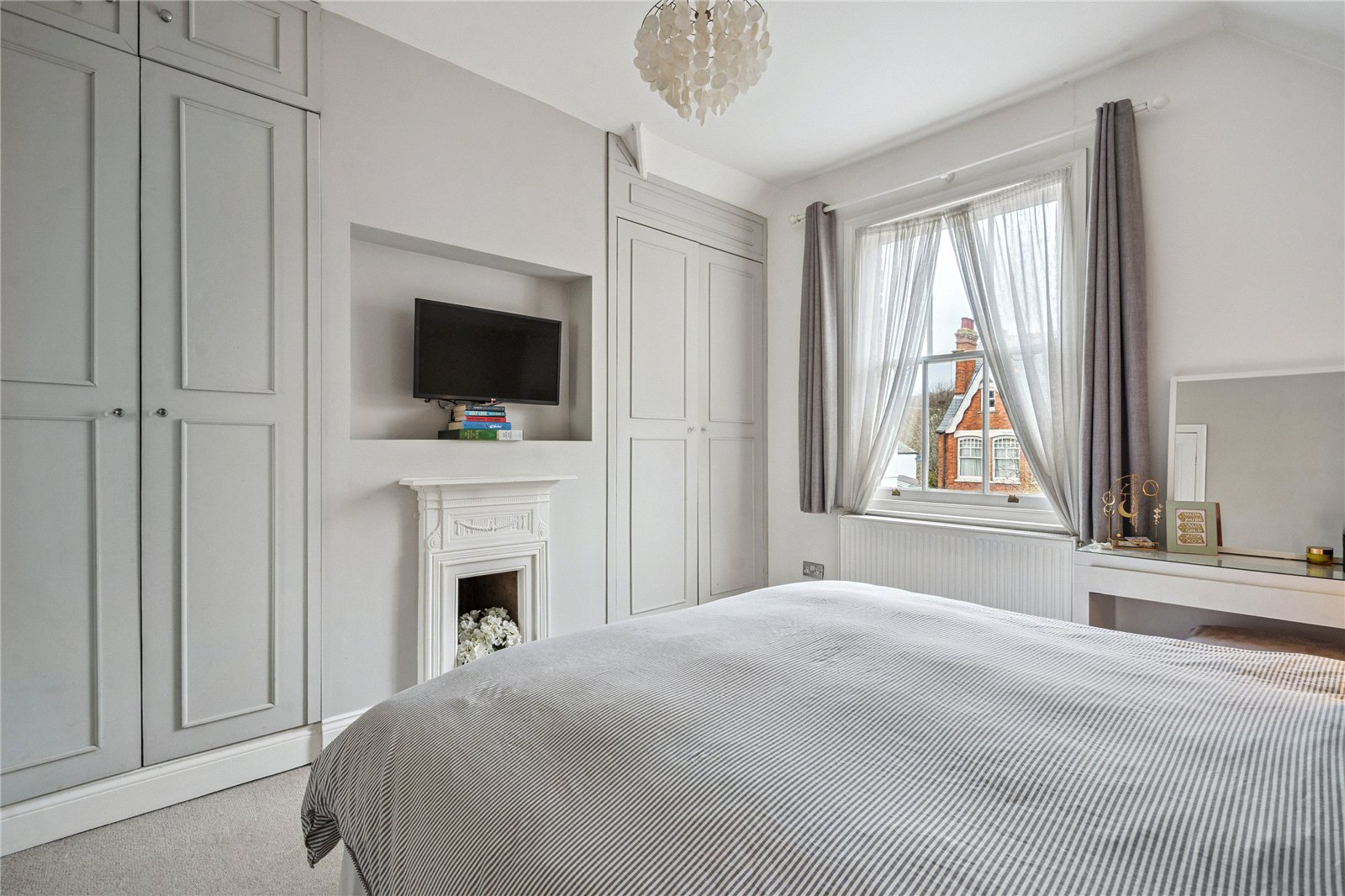 Upstairs, three well-proportioned bedrooms offer peaceful retreats or working-from-home options for a growing family or professional couple. The bathrooms epitomise luxury, combining a traditional roll-top bath with claw feet, vanity units, and a blend of traditional and modern fixtures to create a spa-like retreat.