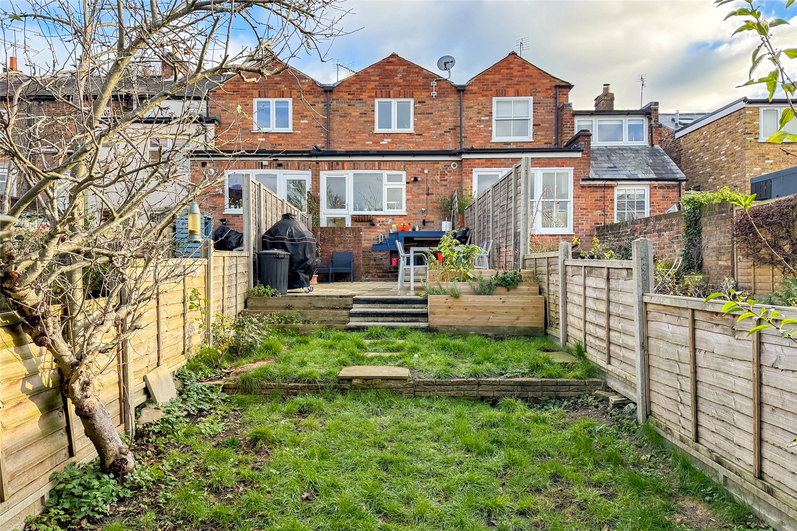 Tucked away in a sought-after city centre setting, this charming two-bedroom character terrace offers a perfect blend of period appeal and modern updates, all within walking distance of the mainline station and the vibrant amenities of St Albans. Offered to the market with no upper chain, its an ideal home for commuters, first-time buyers or investors alike.The ground floor is centred around a welcoming living room featuring an exposed brick wall and fireplace, leading through to a bright refitted kitchen/breakfast room with central island, pantry and direct access to the rear garden. Upstairs, the principal bedroom benefits from built-in storage, alongside a second bedroom with fitted wardrobes and a prime view of the Abbey cathedral, both served by a stylish refitted shower room.Outside, the terraced rear garden begins with a patio seating area and steps down to a lawn, ending with a useful shed to the rear. Set in the heart of St Albans, Alma Cut is moments from the citys cafés, restaurants and historic highlights, while still offering quick access to green spaces and excellent transport links into London.