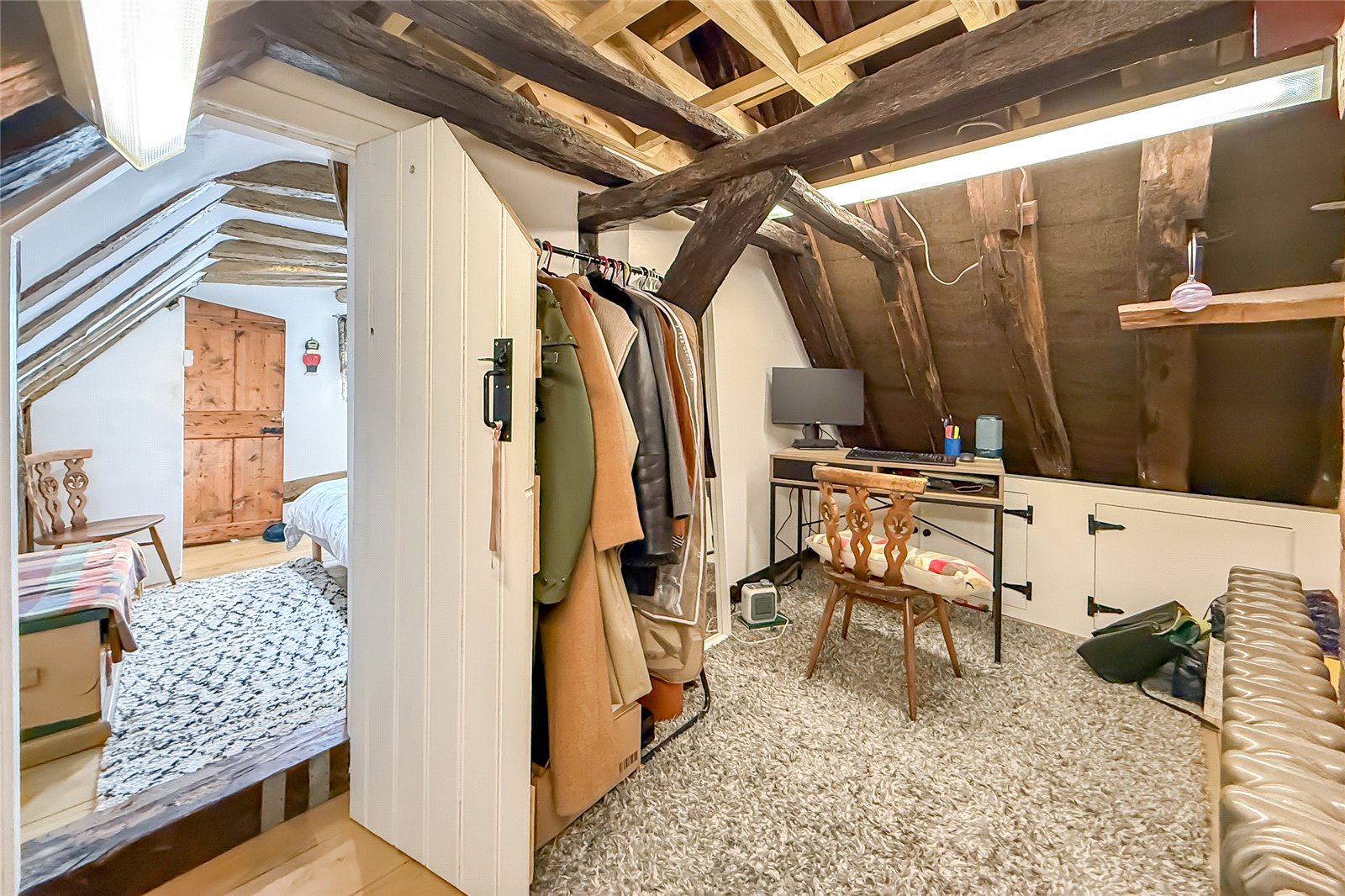 Set along the highly regarded Sopwell Lane, this charming GRADE II LISTED home offers an exceptional blend of period character and city-centre convenience. Arranged over THREE FLOORS, the property retains an abundance of original features and enjoys a wonderfully large rear garden, all within walking distance of St Albans vibrant amenities and the mainline station.The home opens into a cosy and inviting living room, rich in character with an exposed brick feature wall and traditional fireplace creating a warm focal point. From here, there is direct access into a charming kitchen, thoughtfully arranged for everyday practicality while maintaining the cottage feel. The ground floor layout has a natural flow, ideal for relaxed living and intimate entertaining.On the first floor, there are two well-proportioned bedrooms, each filled with natural light and offering flexible use for family, guests or home working. These rooms are served by a family bathroom, positioned conveniently on this level and complementing the homes traditional charm.The top floor is dedicated to the principal bedroom suite, offering excellent privacy and a lovely sense of retreat. This space benefits from extensive eaves storage and a separate dressing room, providing both practicality and a layout rarely found in homes of this style and age.Outside, the rear garden is a true highlight beginning with a pebbled seating area perfect for morning coffee or evening dining, leading into a long lawned garden bordered by planting and fencing that ensures a peaceful, private setting. The length of the garden provides ample space for play, entertaining or future landscaping, making it a real asset in a city-centre home.Sopwell Lane is one of St Albans most desirable addresses, positioned moments from the citys cafés, restaurants, and historic attractions, while also offering easy access to Verulamium Park and local walks. The mainline station is within comfortable walking distance for commuters travelling into London St Pancras, and the area is well served by highly regarded local schooling. A rare opportunity to secure a listed home with genuine character, generous outdoor space and a prime central location.