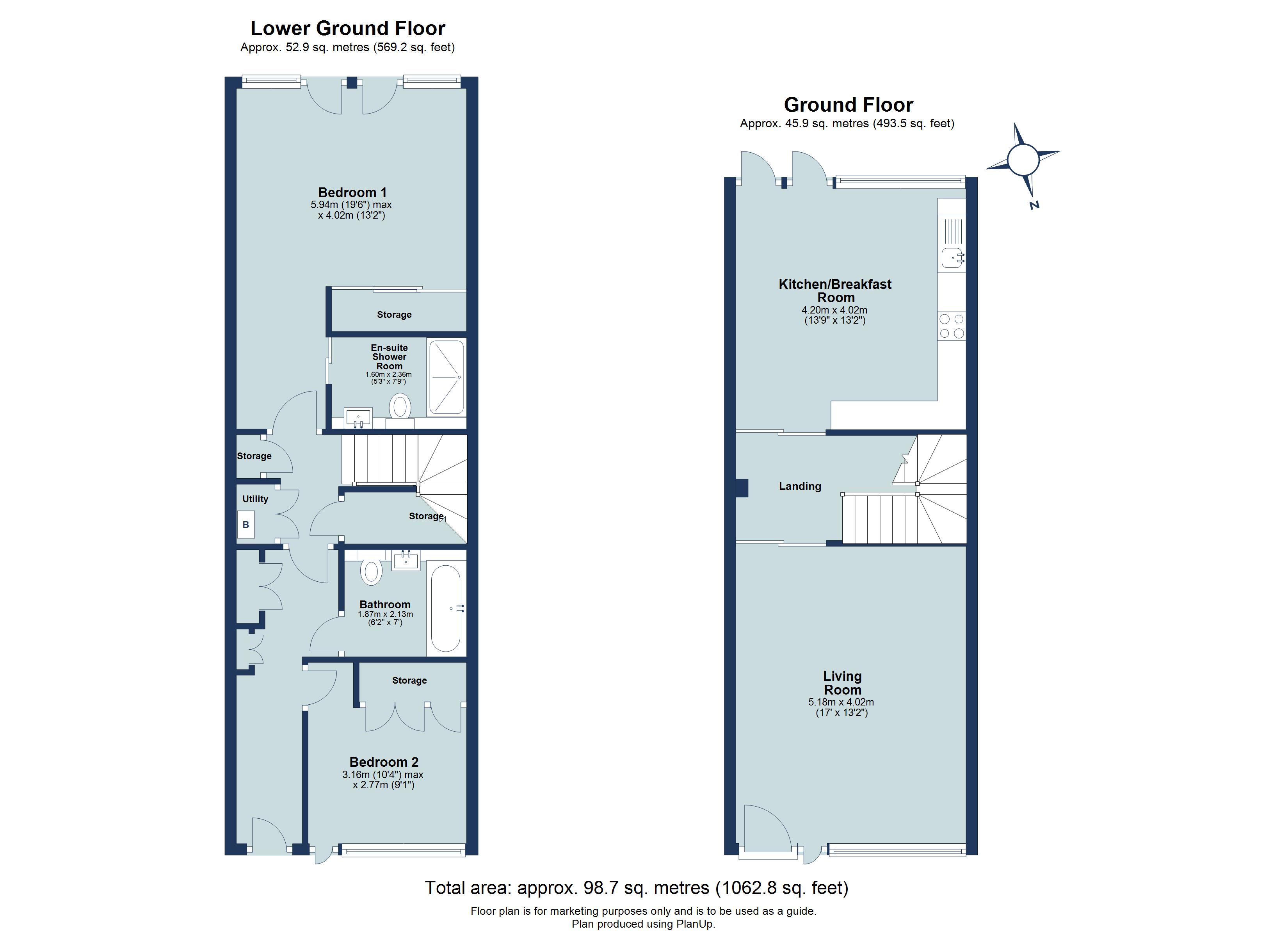 Set within beautifully landscaped communal grounds, this impressive luxury DUPLEX APARTMENT offers in excess of 1,050 sq. ft. of thoughtfully arranged accommodation, combining generous proportions with a superb central location. The property is offered to the market with the significant advantage of NO UPPER CHAIN, making it an attractive proposition for both owner-occupiers and investors alike.Upon entering the apartment, you are welcomed into a spacious entrance hall, providing a sense of space and flow from the outset. From here, a door leads to bedroom two, a well-proportioned and versatile room ideal for use as a guest bedroom, home office, or dressing room. The hallway continues to a stylish family bathroom, fitted with contemporary sanitary ware and finished to a high standard.Beyond the bathroom, the hallway leads to the staircase, which benefits from useful under-stairs storage as well as additional built-in storage cupboards, ensuring practical living without compromising on space. This level is completed by the principal bedroom suite, a generous and tranquil retreat featuring doors opening directly onto a private decked area, perfect for morning coffee or quiet relaxation. An elegant en-suite shower room serves the principal bedroom, finished with modern fittings and tasteful tiling.A staircase descends to the lower ground floor, where a central landing creates a striking feature with sliding doors positioned to both the left and right. These open into the main living spaces of the home, creating a seamless and contemporary feel. To the front is a large, south-facing living room, flooded with natural light and offering ample space for both relaxing and entertaining. To the rear, the kitchen/breakfast room is equally impressive, well-equipped with modern cabinetry and work surfaces, and providing plenty of space for dining, making it ideal for social occasions as well as everyday living.The apartment further benefits from secure underground parking, offering convenience and peace of mindan especially valuable feature in such a central location.Situated within Gabriel Square, the property enjoys a prime position in the heart of central St Albans. The mainline railway station is within easy walking distance, offering fast and frequent services into London, while the popular Odyssey cinema complex is close by. The city centre's vibrant mix of independent cafés, acclaimed restaurants, artisan delis, and boutique shops are all easily accessible, ensuring a highly desirable lifestyle location.This exceptional apartment perfectly combines space, style, and location, making it an outstanding opportunity for those seeking luxury living in one of Hertfordshire's most sought-after cities.