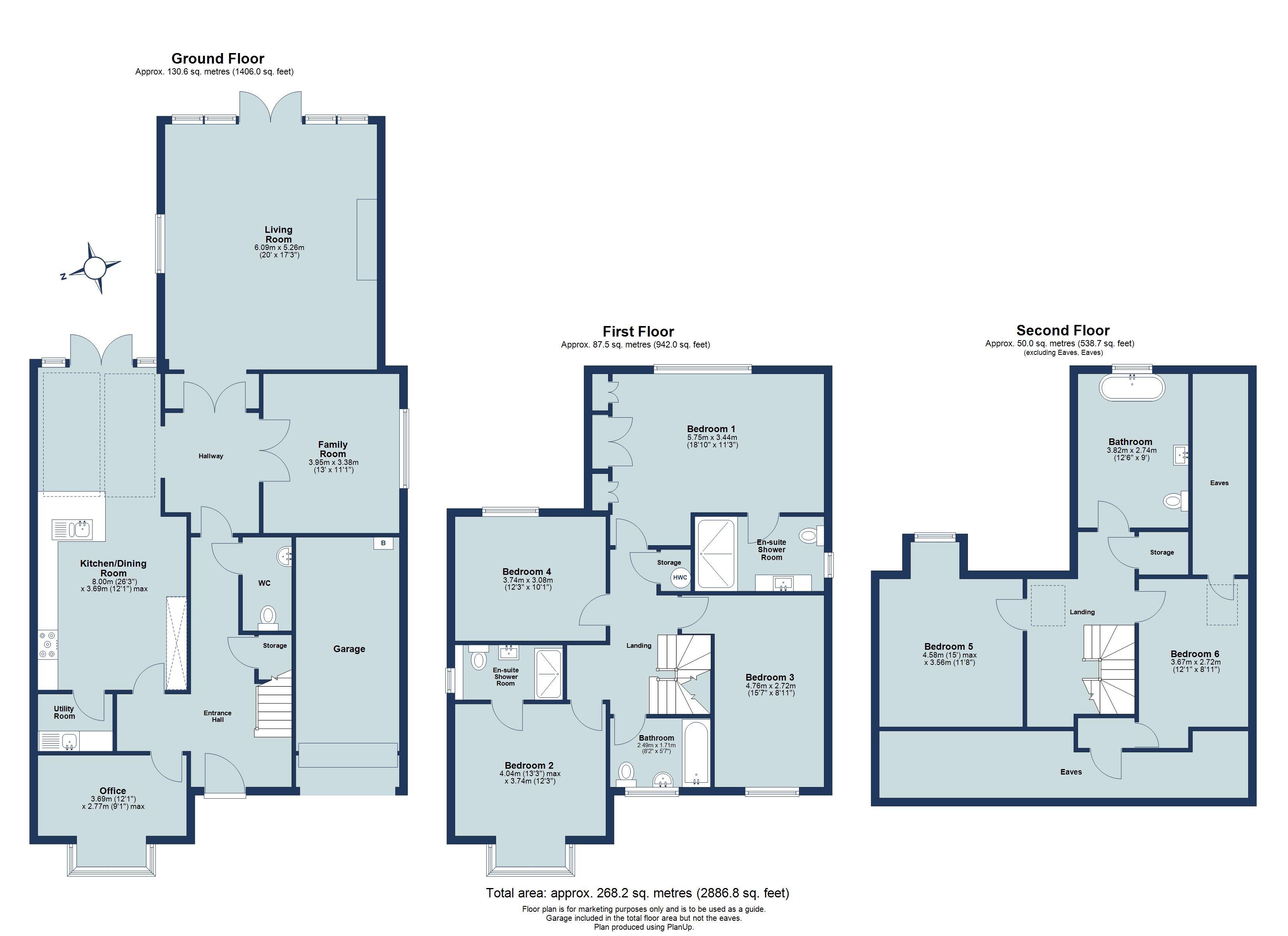 The accommodation extends across the upper floors to provide six well-proportioned bedrooms, offering excellent space for growing families, guests or additional work-from-home requirements. The home is supported by four bathrooms, along with a downstairs WC, ensuring comfort and convenience for busy households.