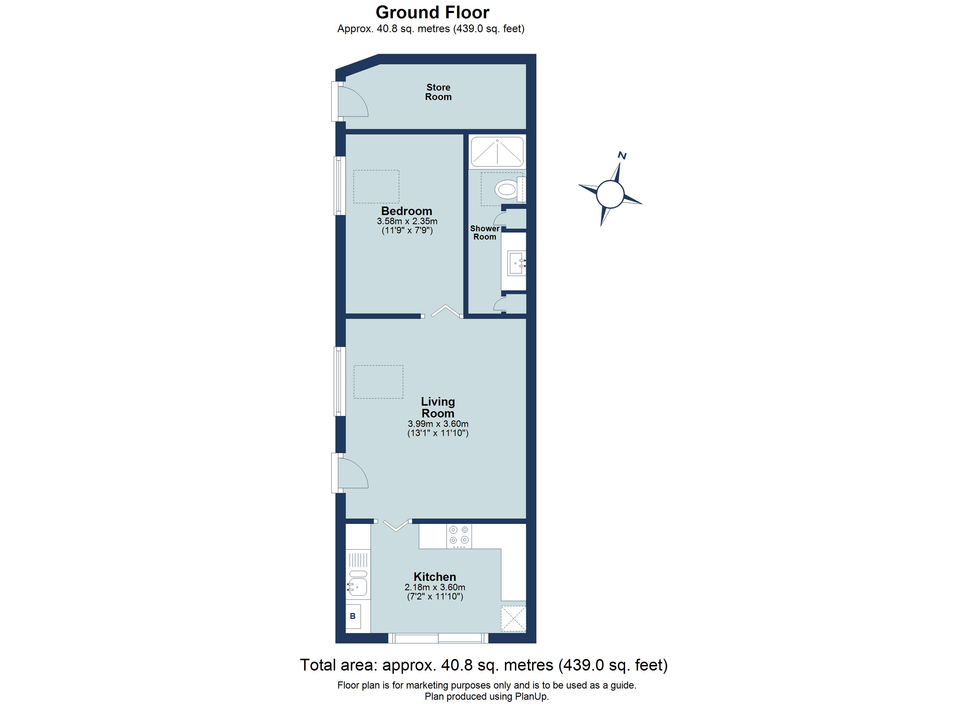 The property enjoys a generous sized living room and a double bedroom with part vaulted ceiling, separate kitchen and an attractive white shower room. Accessed from the garden at the end of the building is also a generous and useful sorage/utility room.