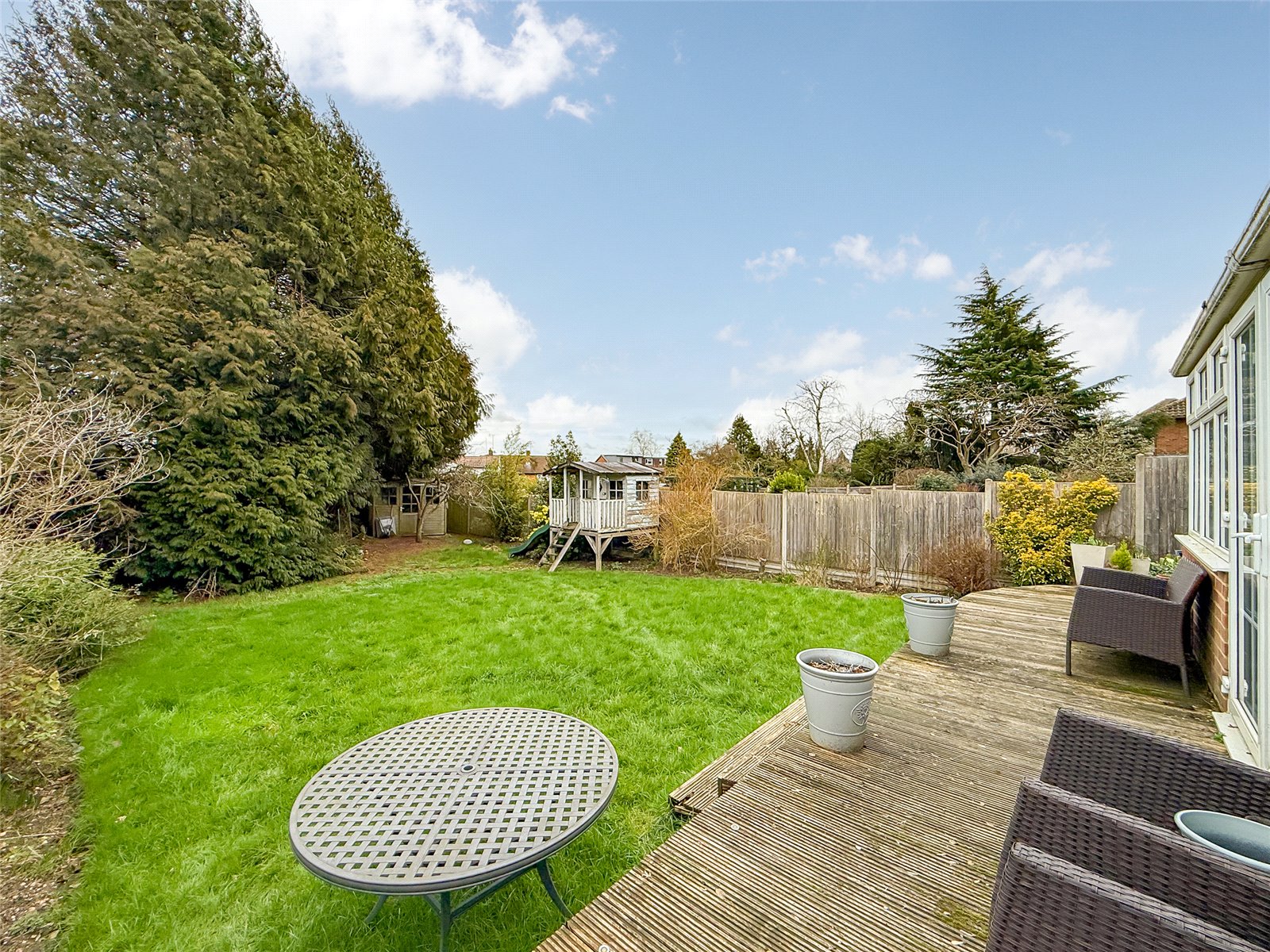 Enjoying over 1,860 sq. ft. of beautifully arranged living space, this impressive four-bedroom DETACHED family home offers generous, versatile accommodation perfectly suited to modern family life, all set within the highly sought-after Marshalswick area of St Albans.The welcoming entrance hall immediately sets the tone for the space on offer, incorporating a defined dining area ideal for entertaining. There is a convenient ground floor WC and a spacious living room.To the rear, the kitchen/breakfast room provides delightful views over the mature garden and offers an excellent space for everyday family living. A door leads through to the family room, which in turn opens into the conservatory with double doors onto the garden creating a wonderful flow of reception space, perfect for gatherings, children's play, or simply enjoying the outlook throughout the seasons. A separate study completes the ground floor, offering an ideal work-from-home space or quiet retreat.Stairs rise to the first floor where four well-proportioned bedrooms can be found. The principal bedroom benefits from its own en-suite shower room, while a modern family bathroom and an additional WC serve the remaining bedrooms, ensuring practicality for busy households.Externally, the property continues to impress. To the front, a driveway provides off-street parking for several vehicles. To the rear, the secluded and mature garden offers a peaceful setting with a decked seating area ideal for outdoor dining, a tree house, and a garden shed. The garden provides a wonderful balance of space for entertaining and safe areas for children to enjoy.Situated in the ever-popular Marshalswick area, this home benefits from being within a well-established residential community known for its family-friendly atmosphere, local amenities, and excellent schooling. Marshalswick offers a small parade of shops, including convenience stores, cafés, and everyday essentials, as well as nearby green spaces and parks, making it a highly desirable place to live.The property is within easy reach of highly regarded schools, including Sandringham School (972 Metres) and Bernards Heath Infant and Nursery School (744 Metres), both within walking distance, further enhancing its appeal for families.Marshalswick also enjoys excellent connectivity. The historic city centre of St Albans is just a short drive away, offering a wide range of shopping facilities, restaurants, cafés, and leisure amenities. St Albans is renowned for its vibrant market, beautiful parks, and historic architecture, including the iconic cathedral, creating a wonderful blend of heritage and modern living. The city also provides convenient rail links into London, making it attractive for commuters.
