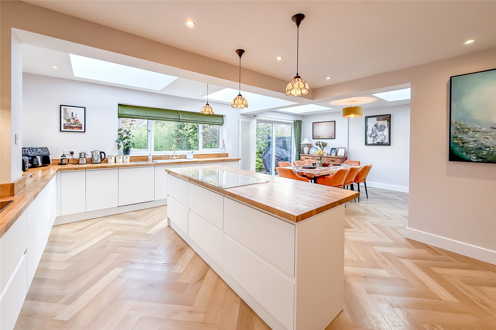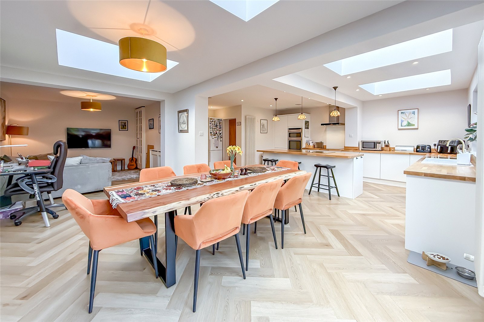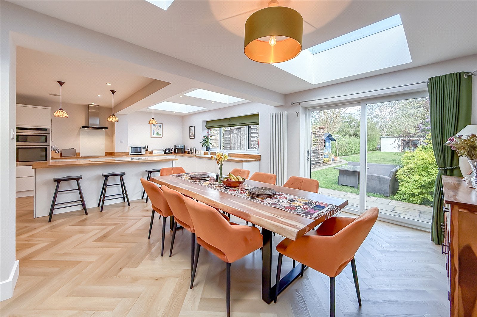 Upstairs, the property offers four well-proportioned bedrooms, providing excellent accommodation for growing families. The home benefits from three bathrooms, including an en-suite to bedroom one, family bathroom and downstairs shower room, ensuring comfort and convenience for busy households.Externally, the property continues to impress with a large rear garden, offering a wonderful outdoor space for relaxation, play and entertaining. The addition of a garden room provides further versatility, ideal for use as a home office, gym or hobby space, depending on individual requirements.To the front, driveway parking provides valuable off-street convenience, completing the practical aspects of the home.The location is particularly appealing, offering a calm, community feel while still being within easy reach of St Albans city centre, local amenities, schooling and transport links. This balance of setting and accessibility makes the property especially attractive for families.Overall, this is a well-balanced and spacious home, offering modern living, excellent outdoor space and a sought-after residential setting with a village-style atmosphere.