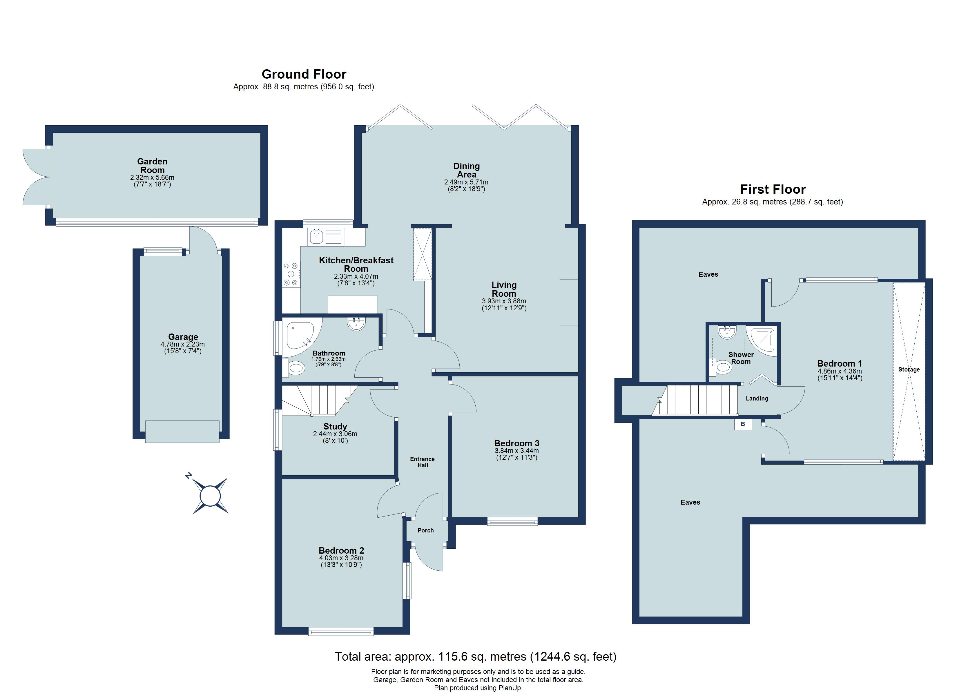 The home is entered via a porch and welcoming entrance hall, leading into flexible ground floor accommodation. At the front sit two well-proportioned bedrooms, served by a family bathroom, making them ideal for guests, children, or use as additional study space. A bright and spacious open-plan dining and living room to the rear enjoys direct access to the garden, while the adjoining kitchen/breakfast room connects seamlessly, ensuring a sociable flow. Completing the ground floor is a dedicated study, which incorporates the staircase leading to the first floor.