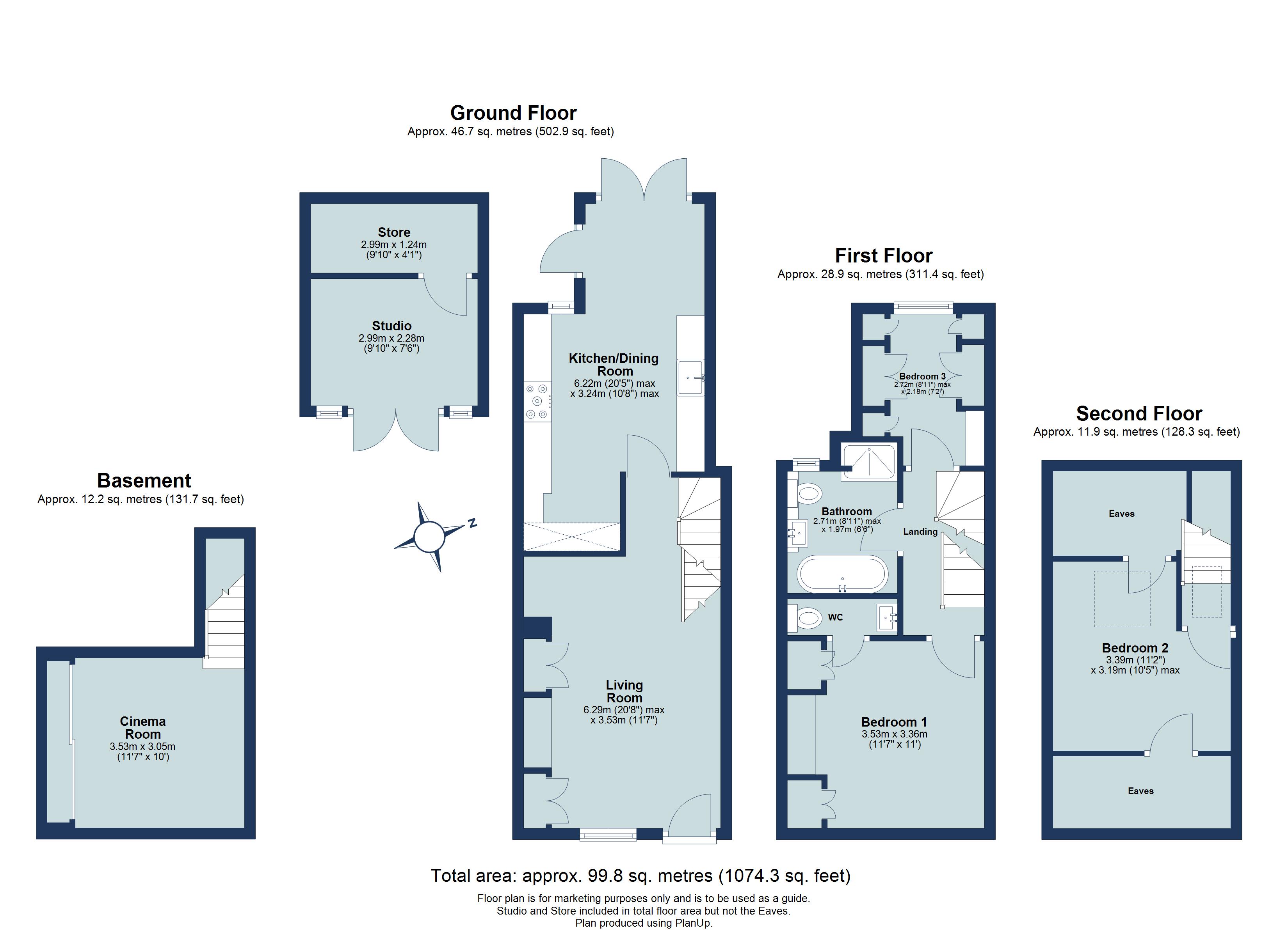 On the first floor, there are two bedrooms, including the principal bedroom with built in wardrobes and separate w.c, bedroom three currently utilised as a walk-in wardrobe and a stylish family bathroom. The second floor provides a further third bedroom, with eaves storage, and offering a charming top-floor retreat, perfect as a guest room.
