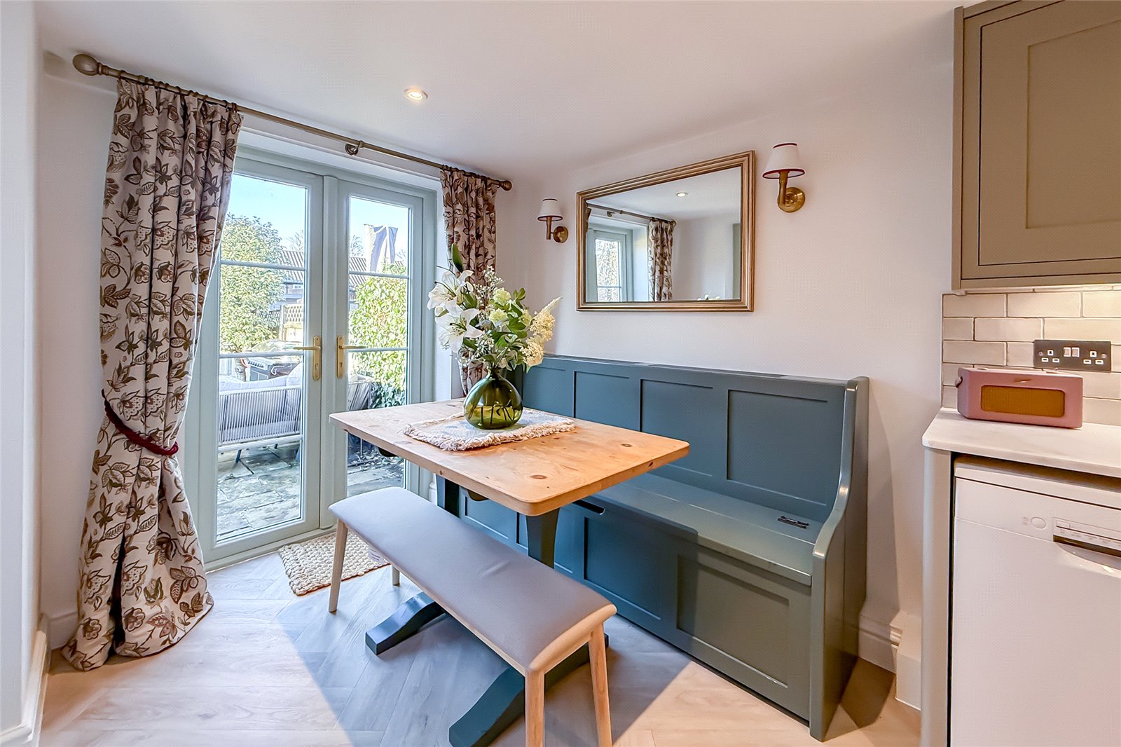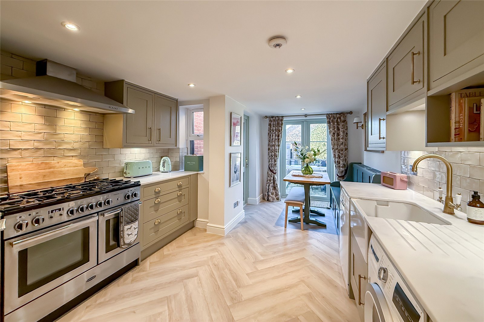 The ground floor is centred around a welcoming and cosy living room that creates a warm and inviting atmosphere. To the rear, the property opens into a stunning kitchen/dining room, thoughtfully designed with ample storage, generous work surfaces and a seating area for dining. This room enjoys direct access to the rear garden, making it ideal for both everyday living and entertaining.