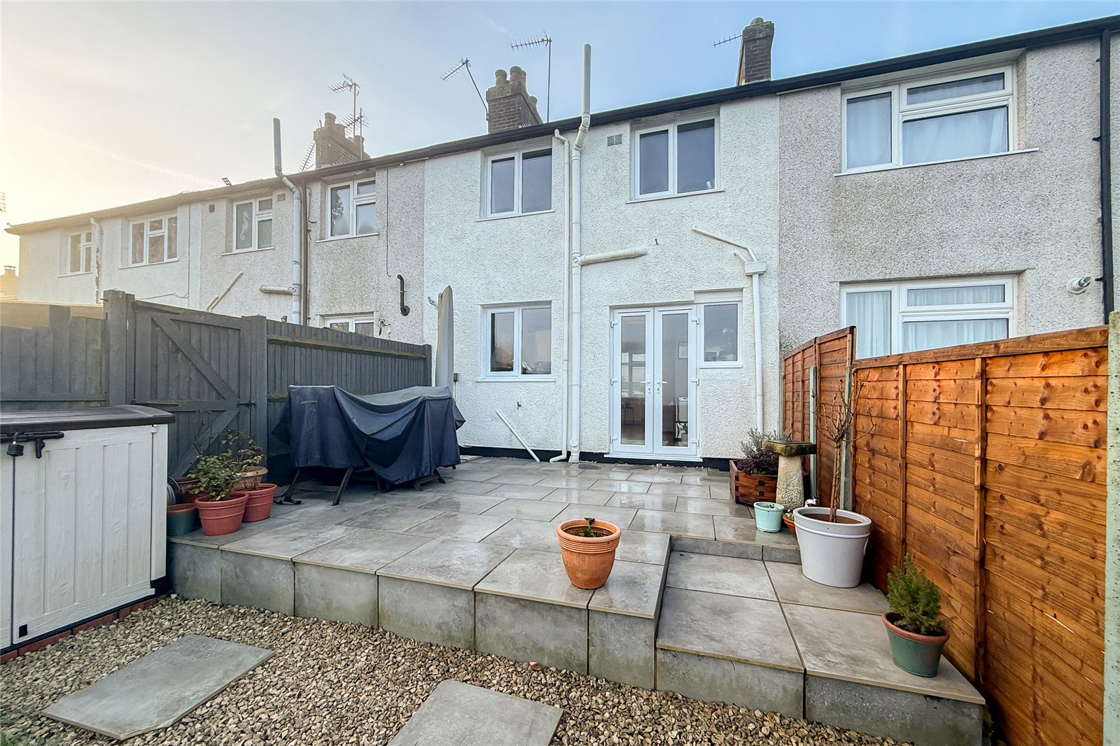 Located on Marshall Avenue is this TWO BEDROOM terraced family home offered for sale with a COMPLETE UPPER CHAIN.The property comprises an open-plan living room and kitchen, with the kitchen benefitting from doors opening out onto the rear garden. Stairs with a useful storage cupboard underneath lead to the first floor, where you will find two bedrooms and a family bathroom.To the rear is a generously sized garden featuring both lawn and patio areas, along with a shed for additional storage. To the front of the property there is driveway parking.Marshall Avenue, St Albans, is conveniently located within easy reach of local shops, schools and amenities, with excellent transport links nearby. St Albans City Centre and mainline station are easily accessible, offering fast connections into London, making this an ideal home for commuters, first-time buyers or young families.