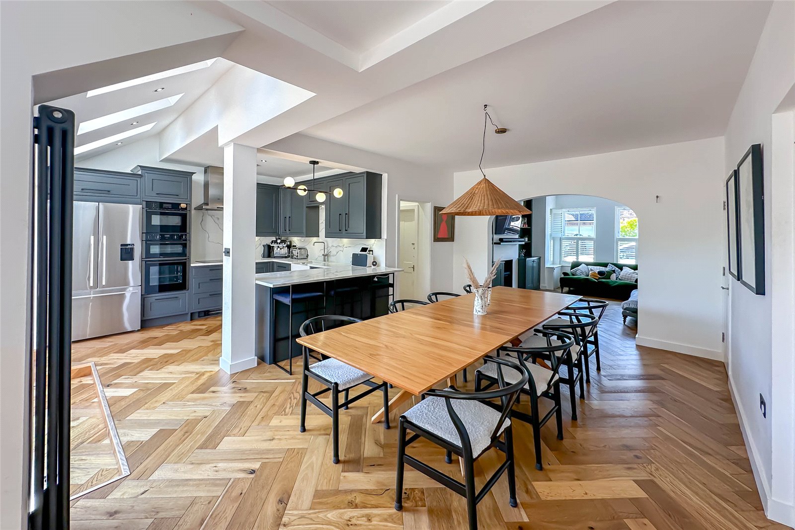 Enjoying over 1,800 sq. ft. of thoughtfully arranged living space, this beautifully presented four-bedroom family home is set within the ever-popular Southdown area of Harpenden, a location highly regarded for its strong sense of community and excellent schooling.Upon entering the property, you are greeted by a generous and welcoming entrance hallway that immediately sets the tone for the space and quality found throughout. From here, a door leads into a truly impressive open-plan living, dining, and kitchen area, designed perfectly for modern family life. Natural light pours in from the front bay window, while the rear bi-fold doors open directly onto the garden, creating a seamless indoor-outdoor connection. The finish throughout this space is impeccable, making it ideal for both everyday living and entertaining. The ground floor also benefits from internal access to the garage, adding practicality and convenience.The first floor comprises three well-proportioned bedrooms, all offering flexibility for family living, home working, or guest accommodation. These rooms are served by a stylish four-piece family bathroom, finished to a high standard and providing ample space for busy mornings.The second floor is dedicated to the spacious principal bedroom, forming a calm and private retreat. This room enjoys excellent ceiling height, useful storage within the eaves, and a modern en-suite shower room, perfectly complementing the space.Externally, the property has been carefully considered. To the front, there is the added benefit of an EV charging point, catering to modern living. The rear garden has been designed with low maintenance in mind, featuring a combination of patio and artificial lawnan ideal setting for relaxing, entertaining, or family enjoyment throughout the year.Located on Kingcroft Road, a quiet and peaceful cul-de-sac, the home is conveniently positioned close to well-regarded local schools, making it an excellent choice for families. A wide selection of shops, restaurants, and coffee shops are within easy reach, while Harpenden town centre and the mainline railway station are within walking distance, offering direct links into London.