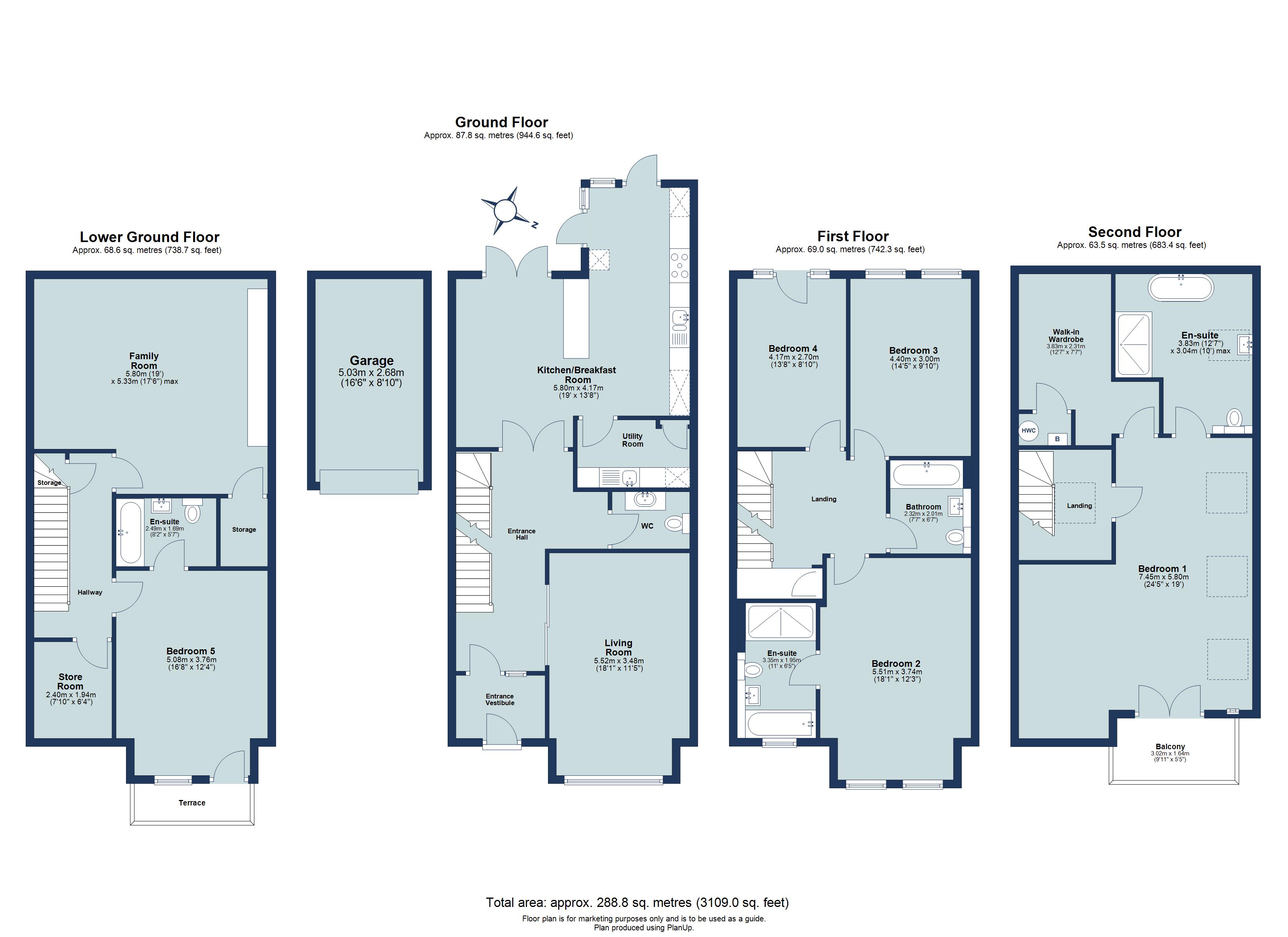 The lower ground floor offers versatile accommodation, including a generous living room and a flexible family room that could alternatively serve as a guest bedroom or home office. Completing this level is a storeroom for additional storage needs and a modern en-suite bathroom, offering flexibility for multi-generational living or visiting guests.