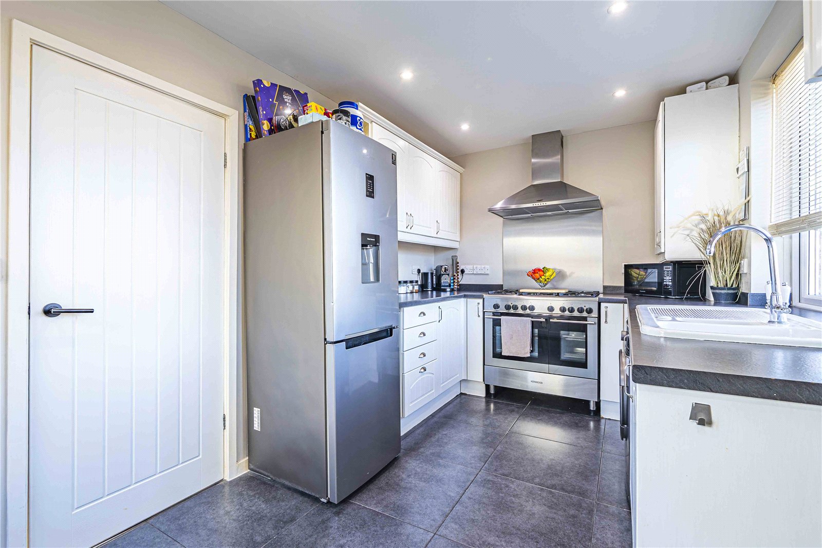 Step inside to discover a modern home offering a stylish kitchen with integrated appliances and a bright, welcoming living area.