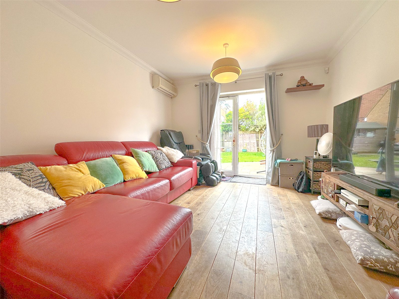 This wonderful home briefly consists of a welcoming entrance hallway leading to the downstairs WC, a modern kitchen with sleek countertops, elevated wall mounted cupboards and utility space, a large open plan lounge diner with patio doors leading out to the South East facing rear garden. The property has the additional benefit of a detached single garage with off road parking for two cars. The kitchen also has the benefit of underfloor heating.