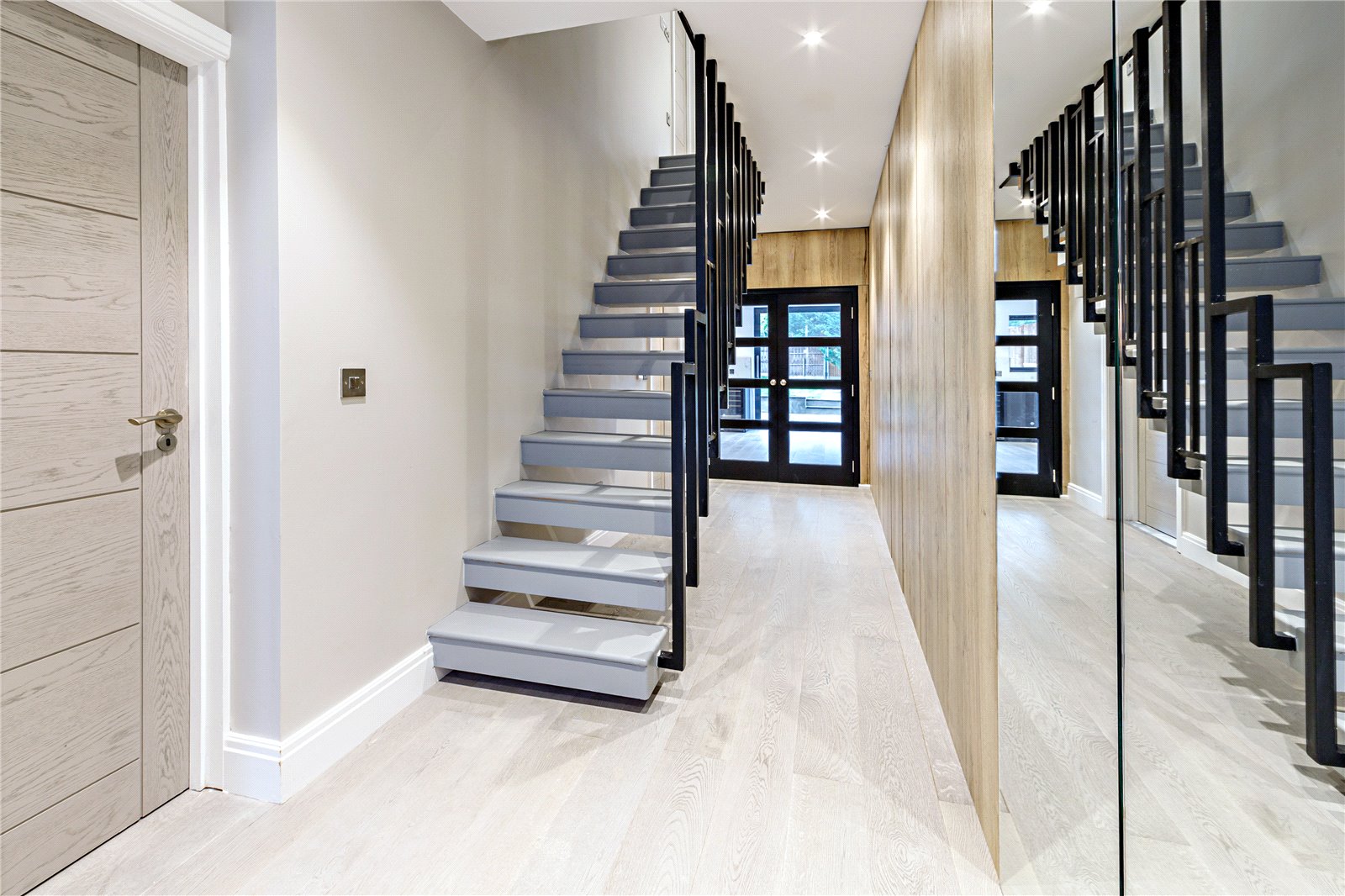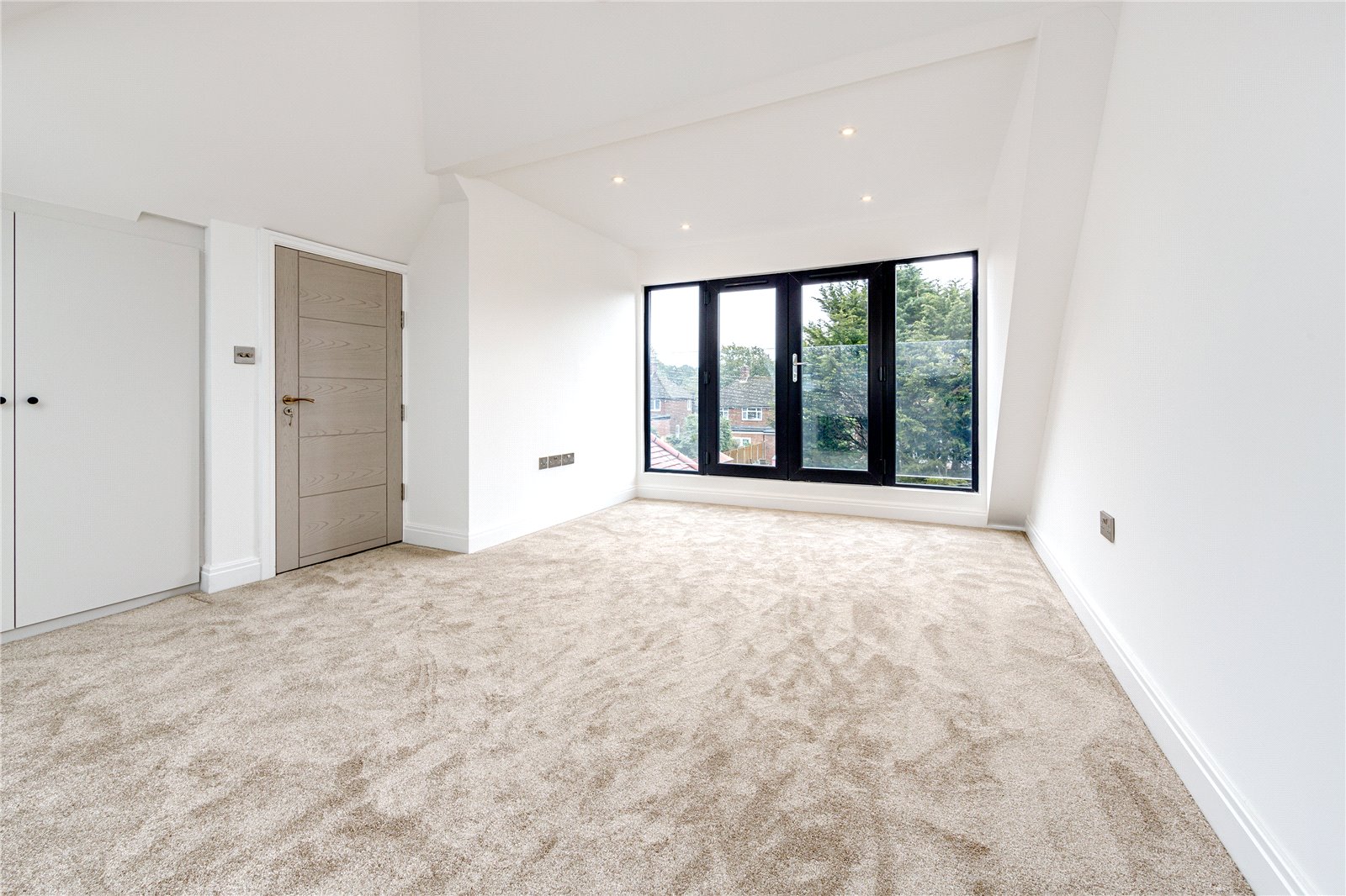 The second floor consists of a large bedroom with fitted wardrobes and a Juliet balcony overlooking the landscaped garden.
