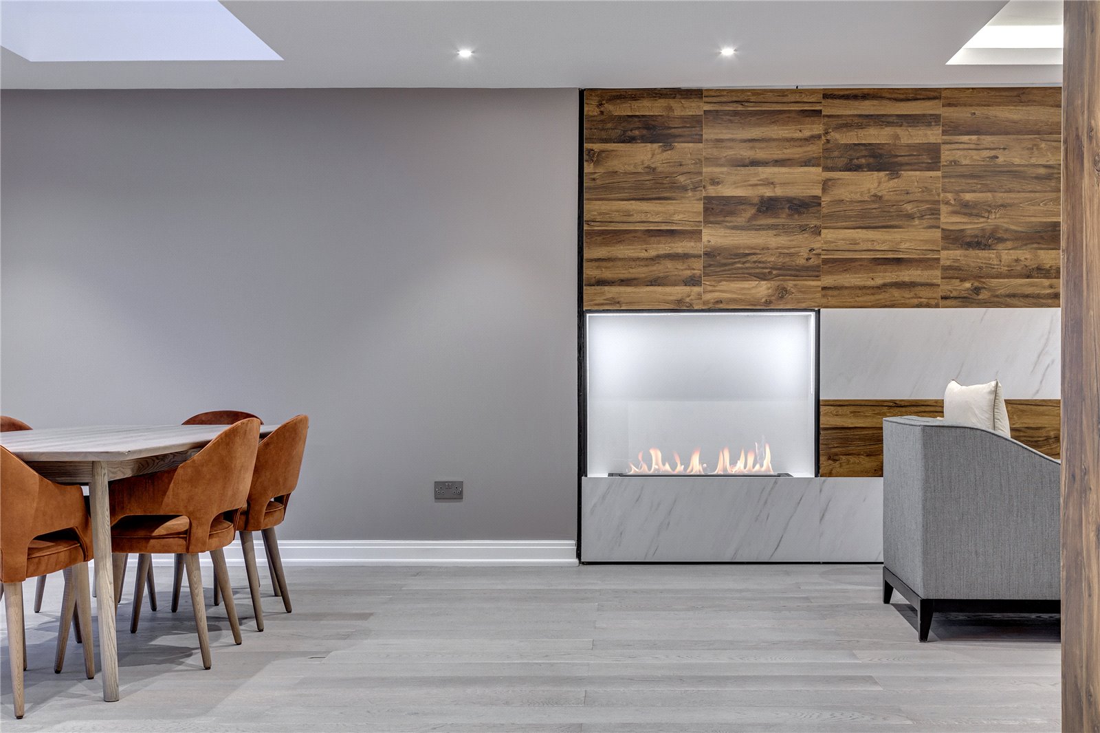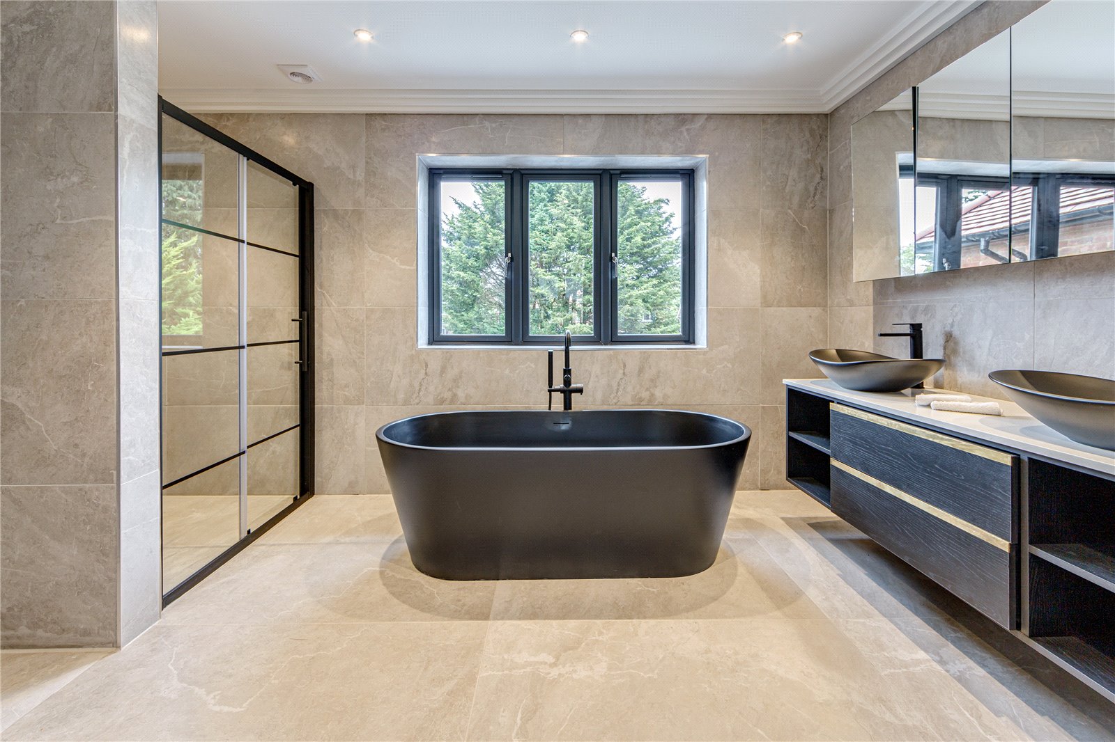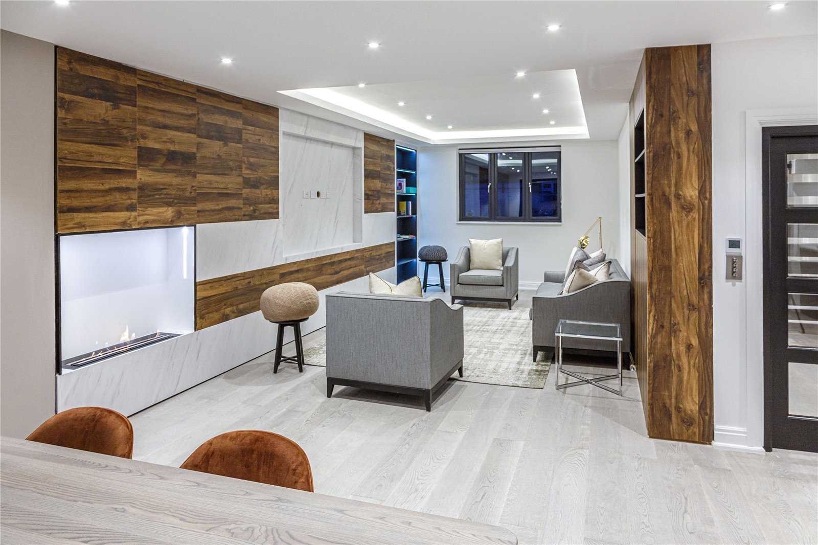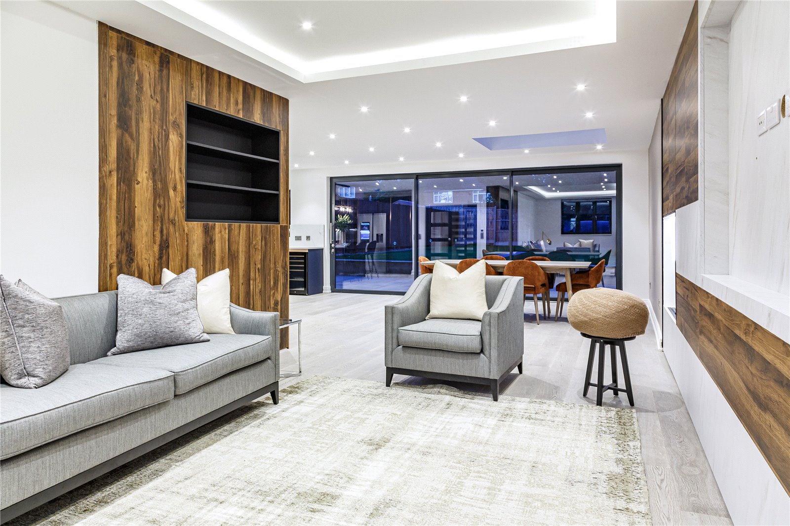 Upon entering this home, you are welcomed by the entrance hall leading on to the ground floor bedroom with Italian tiled en suite with underfloor heating, and then led onto the expansive open plan kitchen diner fitted with refined quartz worktops, kitchen island and Miele appliances. The kitchen and dining area then flows into the family living room, a great space fitted with a large media unit and bio ethanol fireplace. The garden can be accessed via anthracite sliding patio doors. The entire ground floor of this home is fitted with underfloor heating as well as the bathrooms within the property.