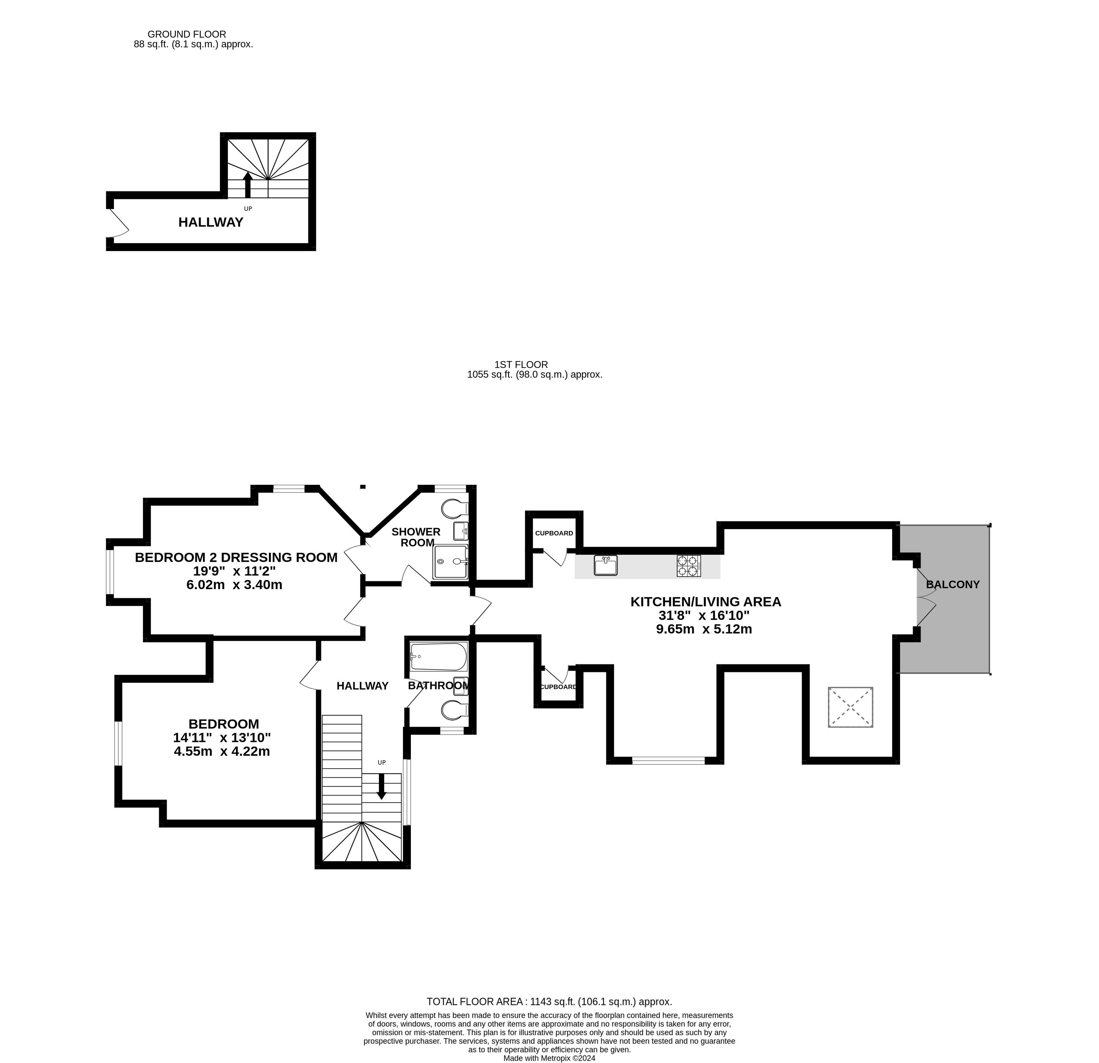 Spanning over 1,100 sq ft, this charming apartment briefly includes a staircase leading to a bright and spacious entrance hall that opens into two double bedrooms, with the principle bedroom offering an en-suite shower room, in addition to a separate bathroom.