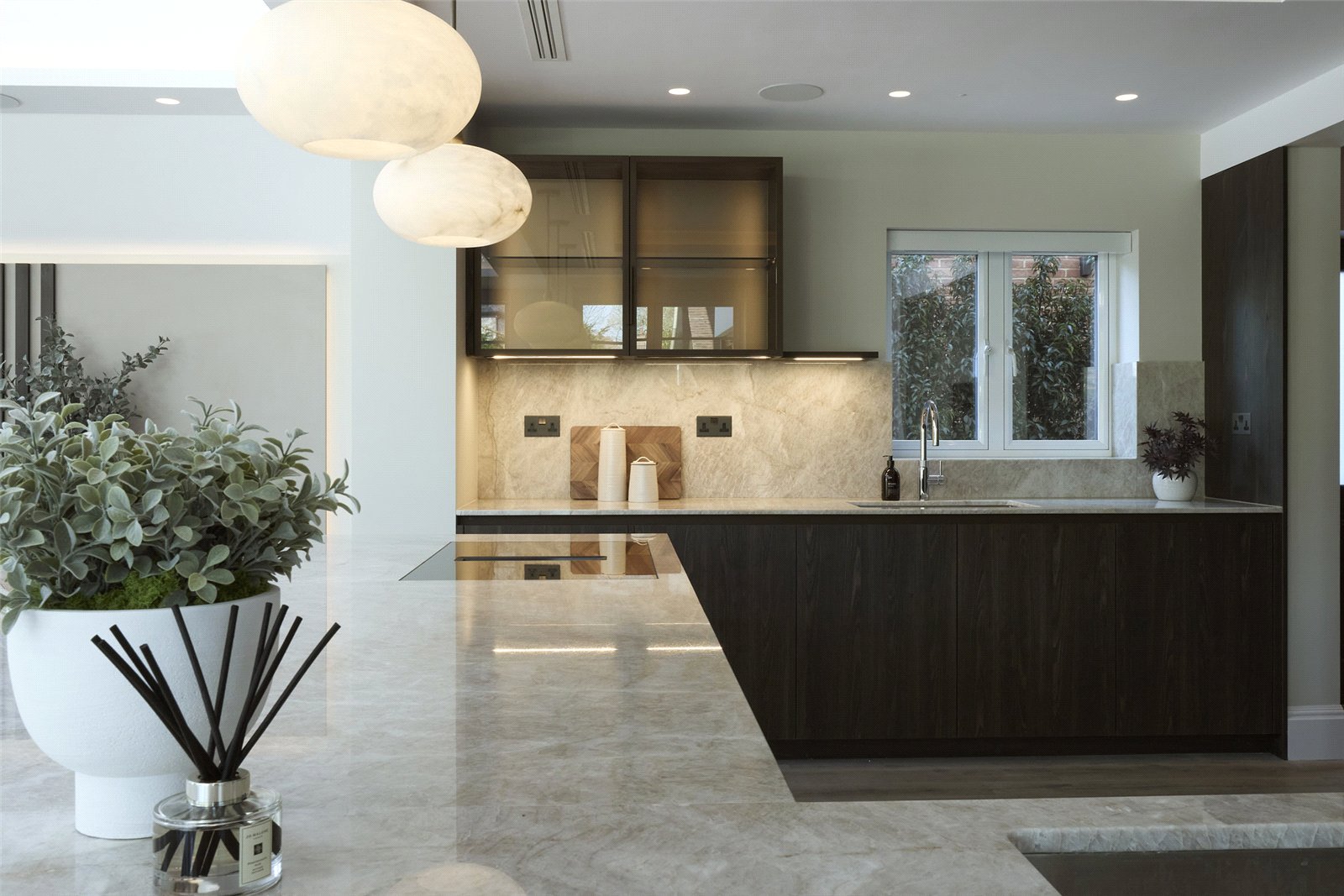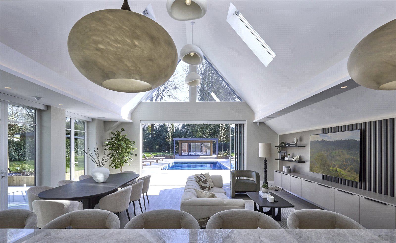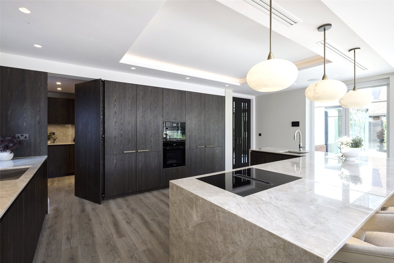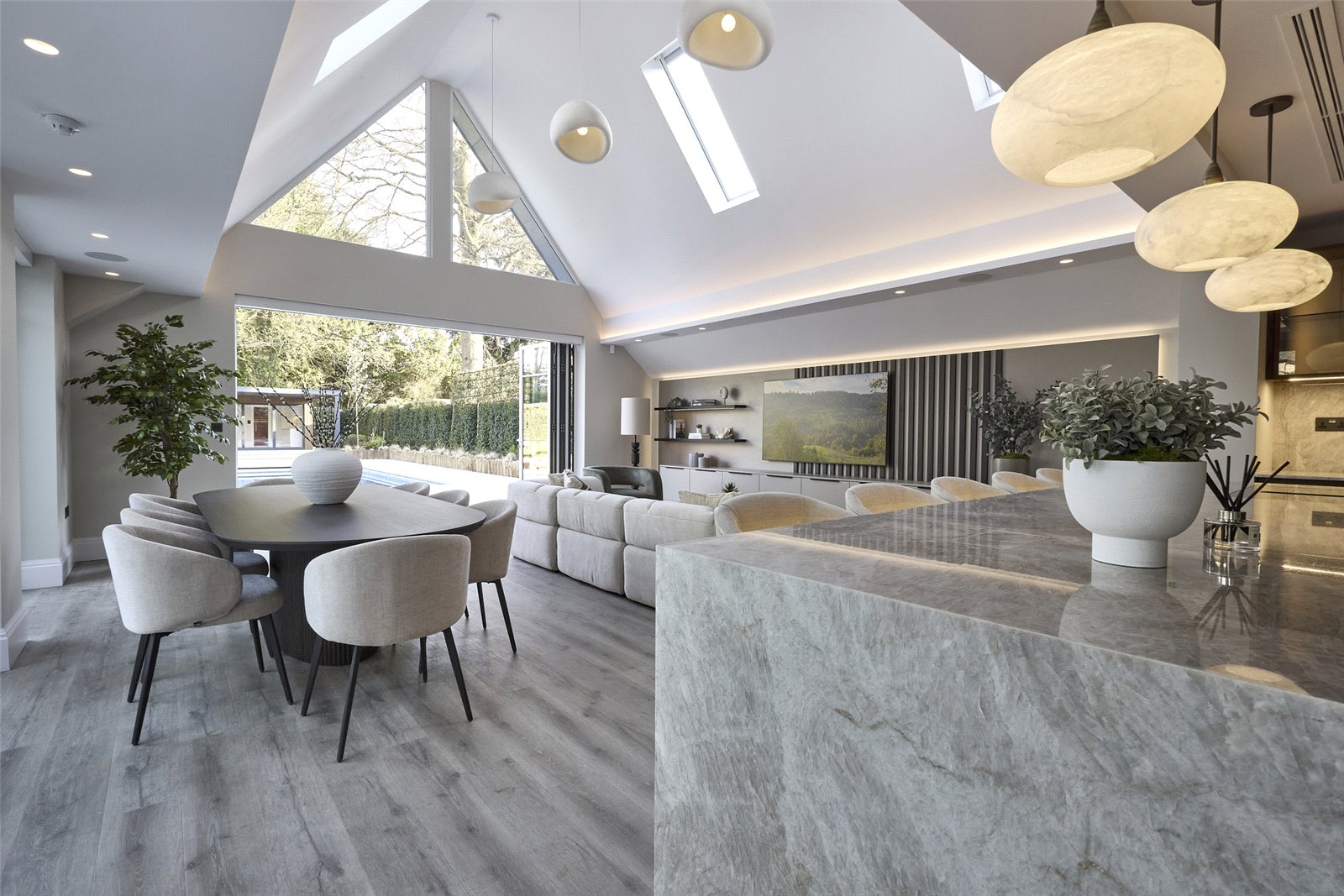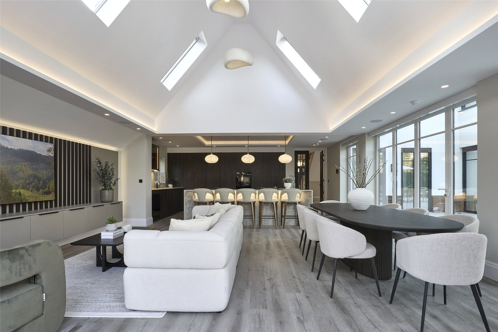 Beaumont is a striking, brand new detached residence set on the prestigious Aldenham Avenue in Radlett, offering an exceptional blend of contemporary luxury, elegant proportions and refined craftsmanship. Opportunities of this calibre are rarely available, and this expansive private home has been thoughtfully designed for modern family living while delivering an impressive setting for entertaining. Positioned along one of Radletts most desirable roads, Aldenham Avenue is known for its wide tree-lined setting, substantial detached homes and peaceful residential character, yet remains within easy reach of the village centre, highly regarded schools and fast connections into London. The location perfectly balances privacy and exclusivity with everyday convenience.The ground floor opens into an impressive entrance hall that immediately sets the tone for the home, with generous proportions, refined finishes and a natural flow between the principal living spaces. At the heart of the house sits a magnificent open-plan living, dining and kitchen area measuring over thirty-three feet, designed to maximise light through expansive glazing and direct views over the landscaped garden. The bespoke Poggenpohl kitchen is complemented by premium appliances, sleek cabinetry and elegant worktops, creating a sophisticated yet practical environment for both everyday living and entertaining. Additional ground floor accommodation includes a substantial reception room, ideal as a formal lounge, a dedicated study perfect for working from home, and a generous games room offering versatile leisure space. The layout is completed by a large garage and well-considered ancillary areas, all arranged to create a seamless and highly functional ground floor.The first floor continues the sense of scale and luxury, centred around a beautifully appointed principal bedroom suite. This impressive space features generous dimensions, a luxurious en-suite bathroom and carefully designed storage, providing a private retreat within the home. Two further large double bedrooms are also located on this floor, each offering excellent proportions and flexibility for family living or guests. A utility and storage area is thoughtfully positioned to enhance practicality without compromising the elegance of the accommodation. High ceilings and large windows throughout ensure the first floor feels bright, airy and connected to the surrounding greenery.The second floor provides three additional spacious bedrooms, completing the homes six-bedroom configuration. Each room is well-proportioned and filled with natural light, making this level ideal for growing families, guest accommodation or adaptable living arrangements such as additional office or hobby space. The layout offers privacy and separation from the principal suites below, enhancing the overall versatility of the property.Beyond the internal accommodation, Beaumont continues to impress with its beautifully landscaped garden, designed to create a private outdoor sanctuary. A stunning ten-metre heated swimming pool forms a central feature, accompanied by a sauna and pool house, delivering a resort-style experience at home. The outdoor space is perfectly suited to entertaining, relaxing and enjoying the peaceful surroundings that Aldenham Avenue provides.Overall, Beaumont represents a rare opportunity to acquire a one-of-a-kind residence combining classical styling with cutting-edge specification. From its luminous interiors and generous proportions to its exceptional leisure facilities and prime Radlett address, this remarkable home has been crafted to offer comfort, elegance and modern luxury across every level.