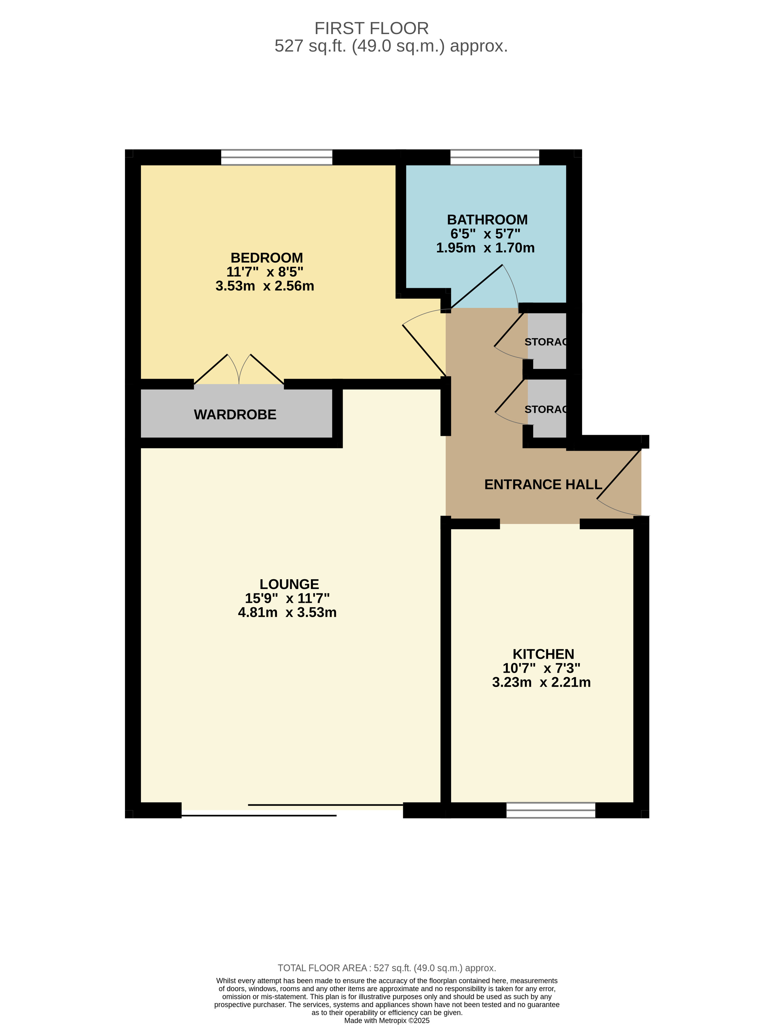 The entrance hallway leads to the fully fitted kitchen, a spacious lounge with alcove space ideal for a workspace, the main bedroom with fitted wardrobes and the bathroom. The entrance hall has the benefit of two storage cupboards.