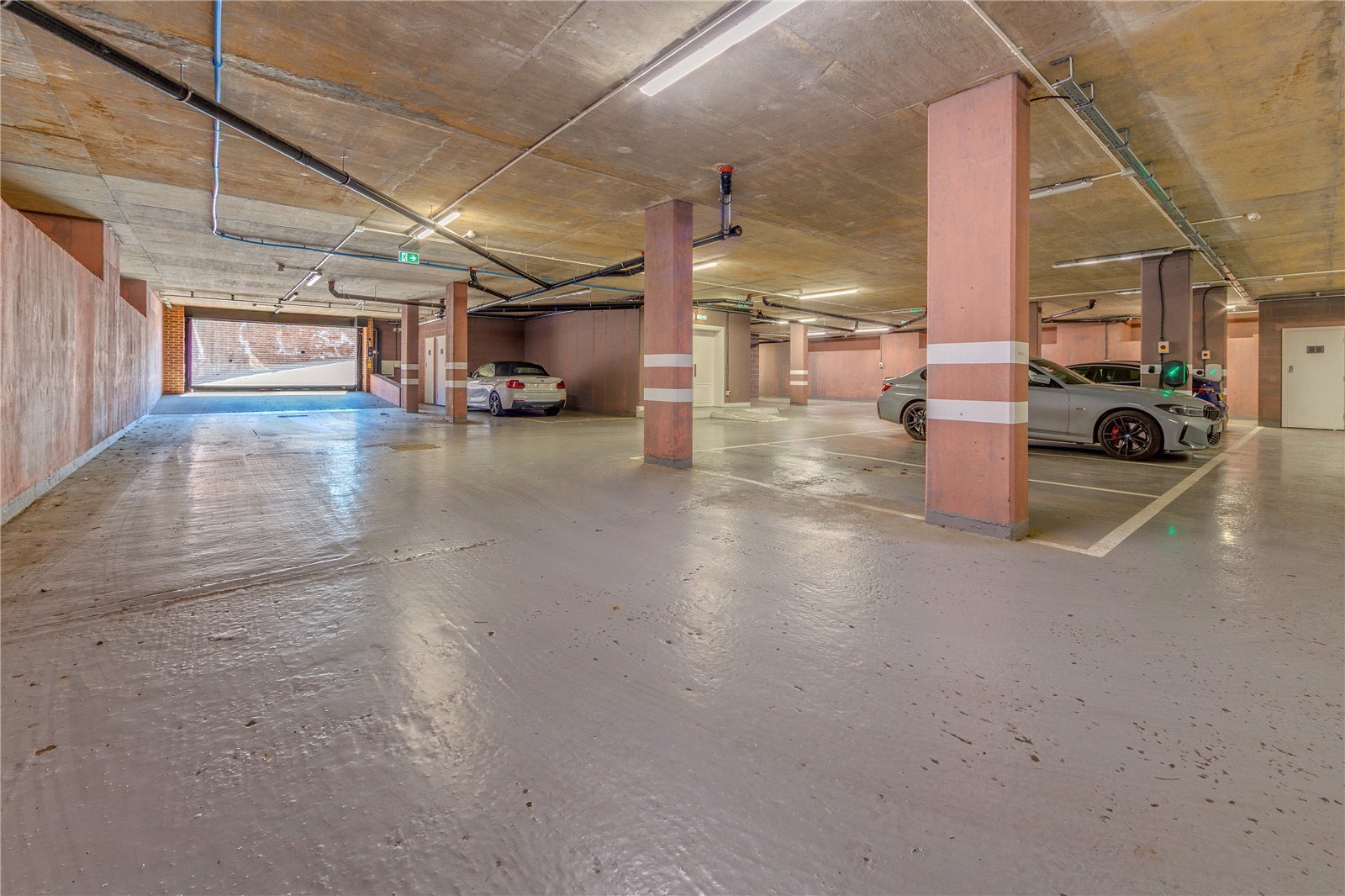 Located on the first floor with a south-facing orientation, the apartment is bathed in natural light throughout the day. Additional features include a guest WC, three generous internal storage/utility rooms, lift access, two secure underground parking spaces with EV charging provision, and a private basement storage room ideal for bikes or larger items.